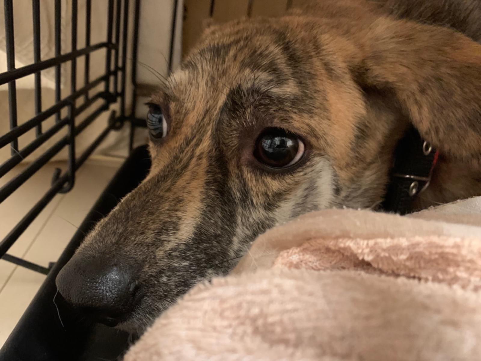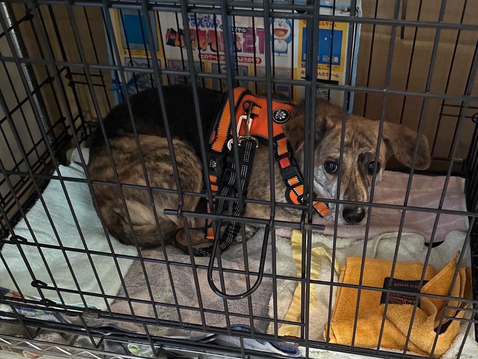 中型こげ茶12キロ背中は黒い首輪なし耳は大きめで折れてます。
