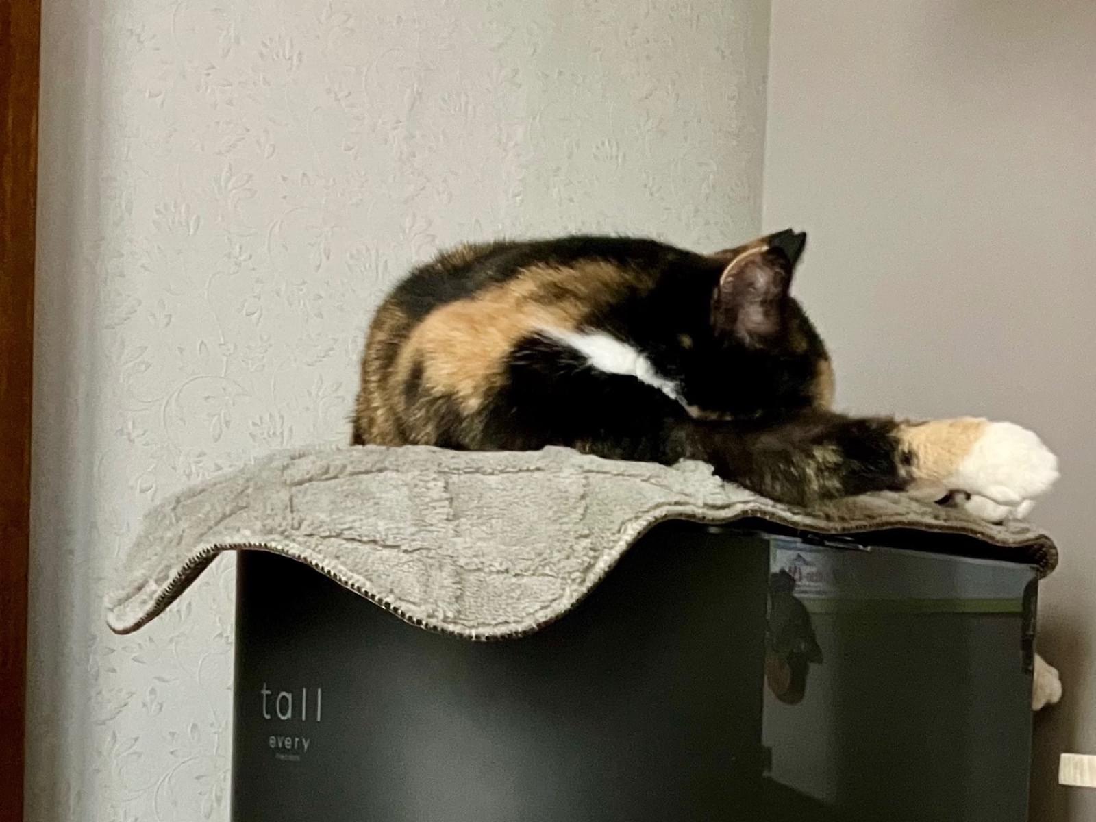 昨年2023年10月頃から家に来始め11月初めに保護しました。庭に現れた頃はお腹空いていたのかおやつのクッキーを手から食べる勢いでしたが、保護した直後はかなり警戒していました。ようやく慣れてきたところです。