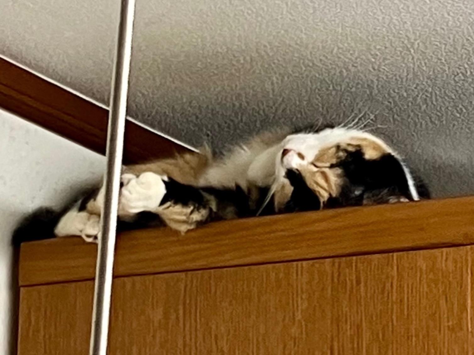 日向ぼっこ中に網戸を押し破って外に出てしまいました。