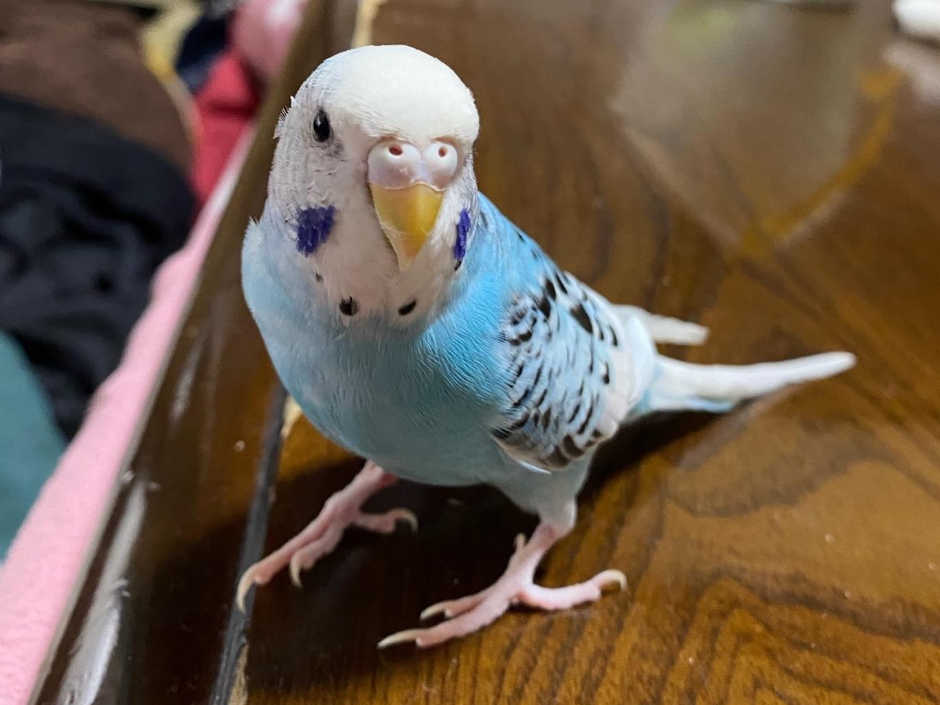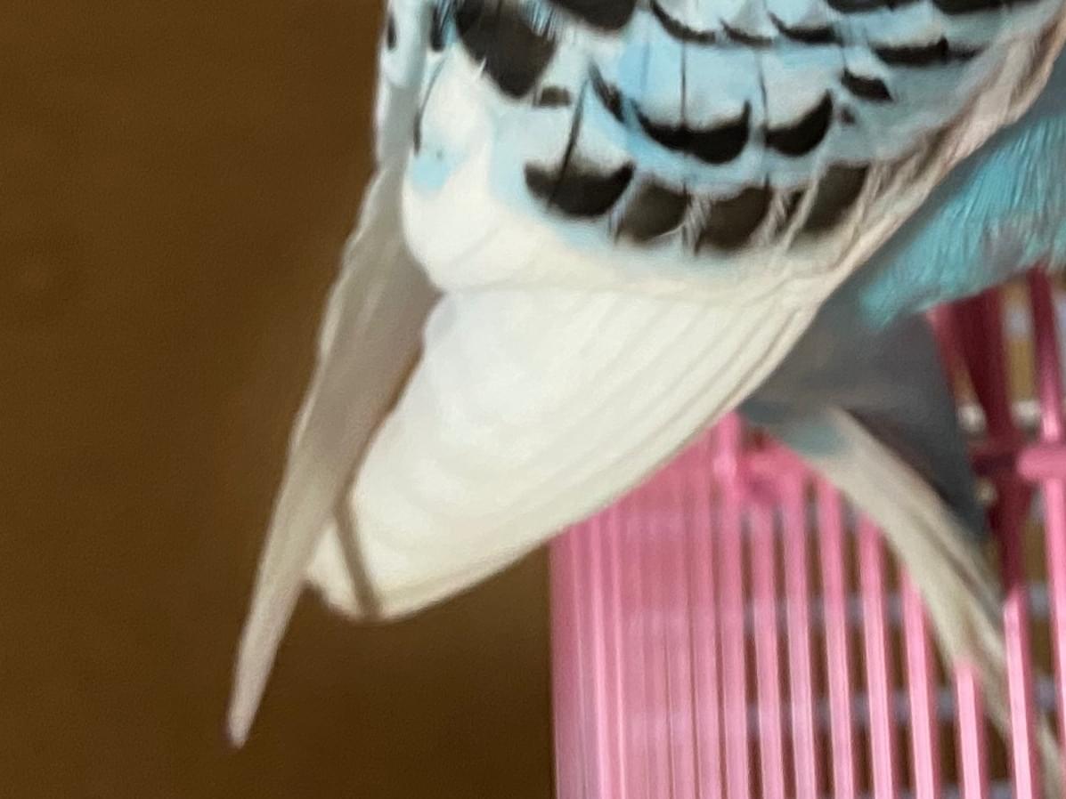 頭が白く身体は水色翼の先やしっぽ部分が白い子です。