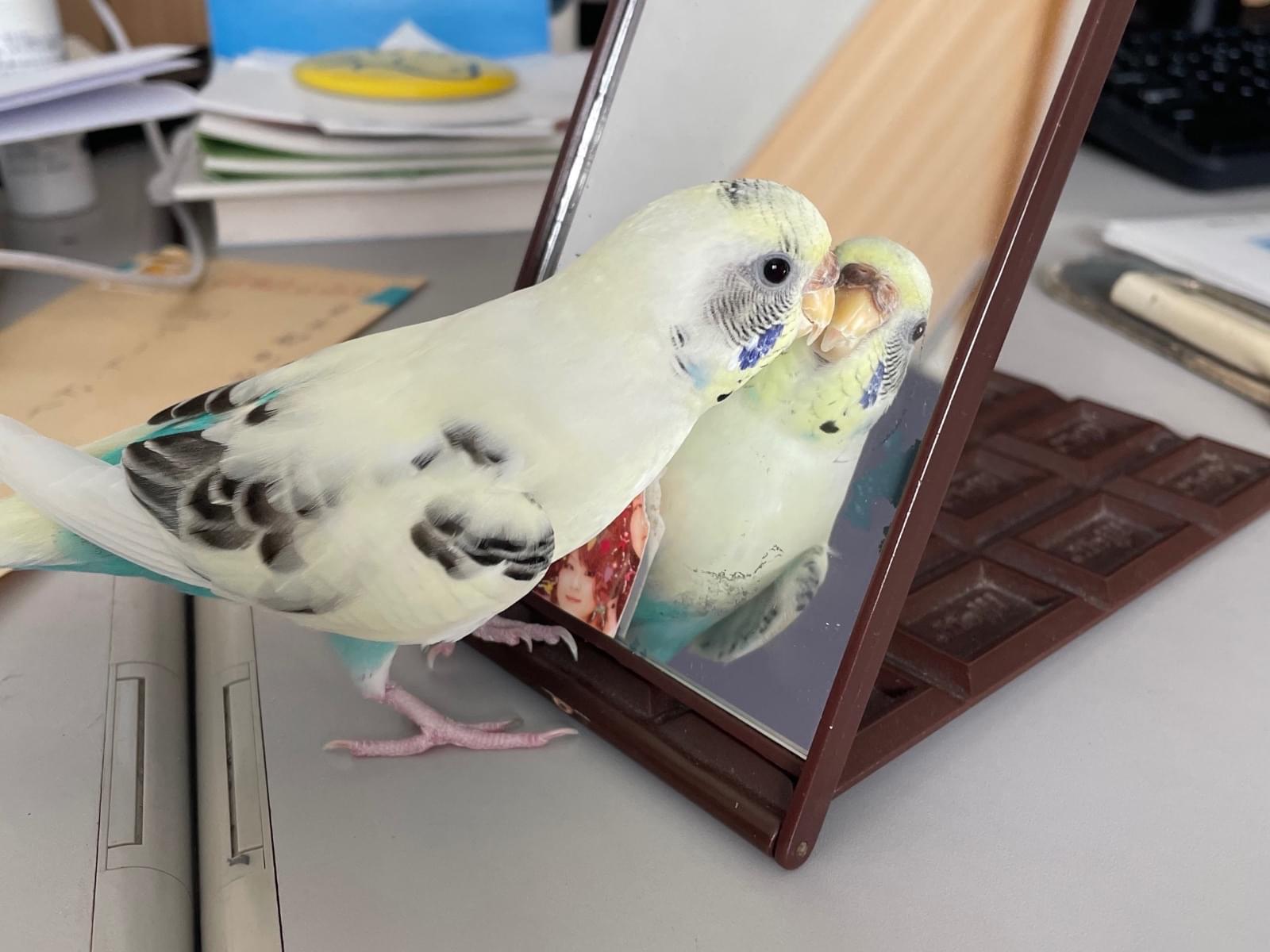 シロタ、シーロちゃん、と自分の名前をしゃべります。人に慣れていて、鏡が大好きです。