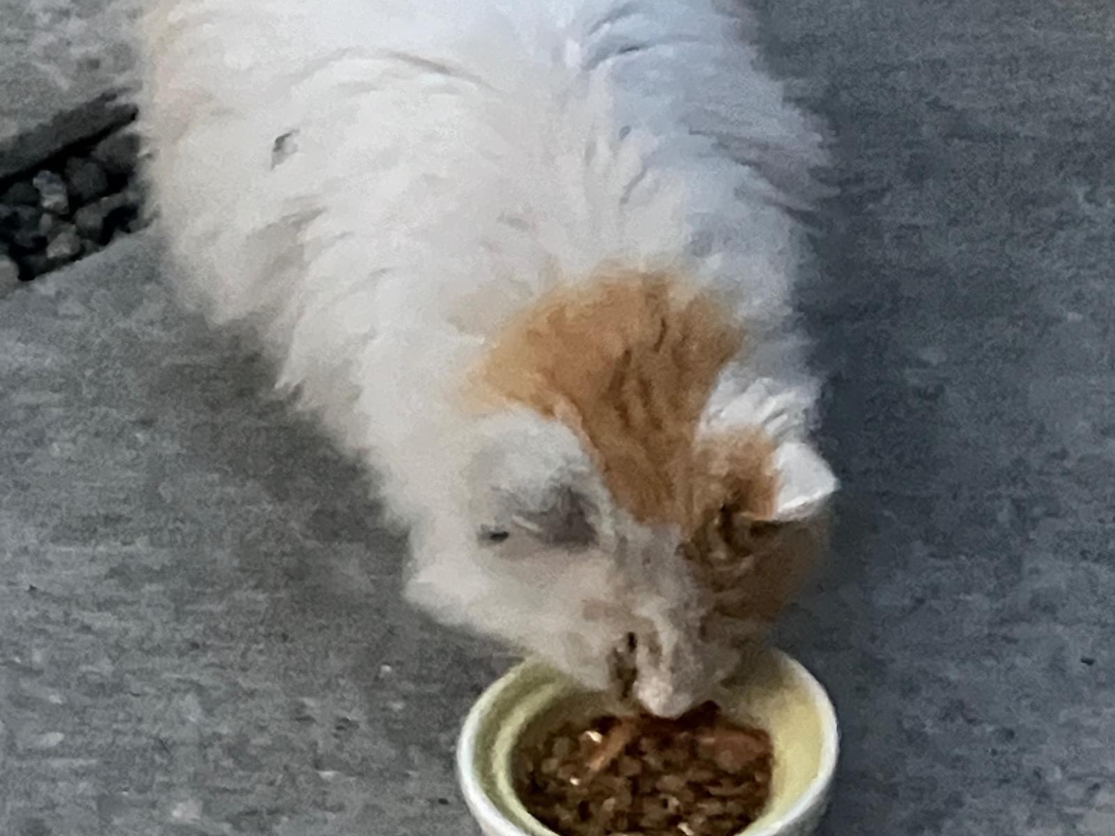 お腹が空いてるのかと家の猫のエサをあげると少し食べ、水を飲みしばらくじっとしてました。