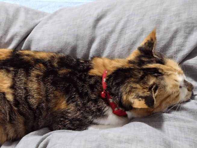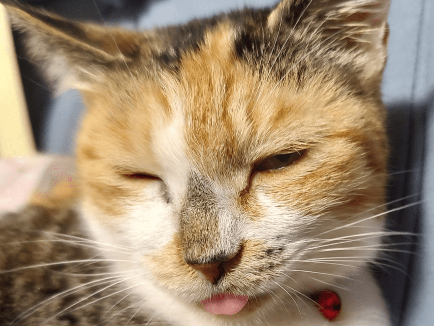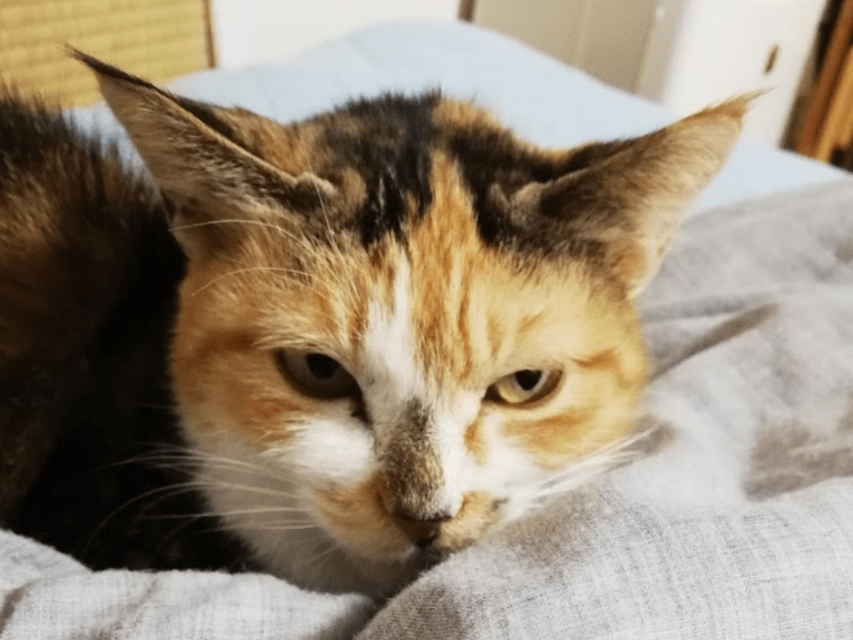 尻尾が周りの三毛猫と比べると短くかぎしっぽとなっています