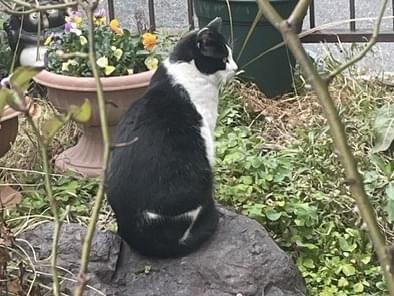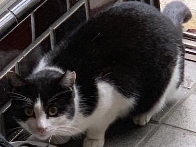 首輪なしで左耳にさくらカットがあります。目は黄色で鼻と肉球がピンクです。尻尾は真っすぐ長く、右後ろ脚付け根から背中にかけて切り込みが入る感じで黒の中に白が入っています。人馴れ不十分で怖がりなので近づくと逃げると思います。どんな些細な事でも構いませんので、よく似た子を見かけた場所や付近の地域猫の餌場をご存知の方がいらっしゃいましたらご連絡よろしくお願いします。