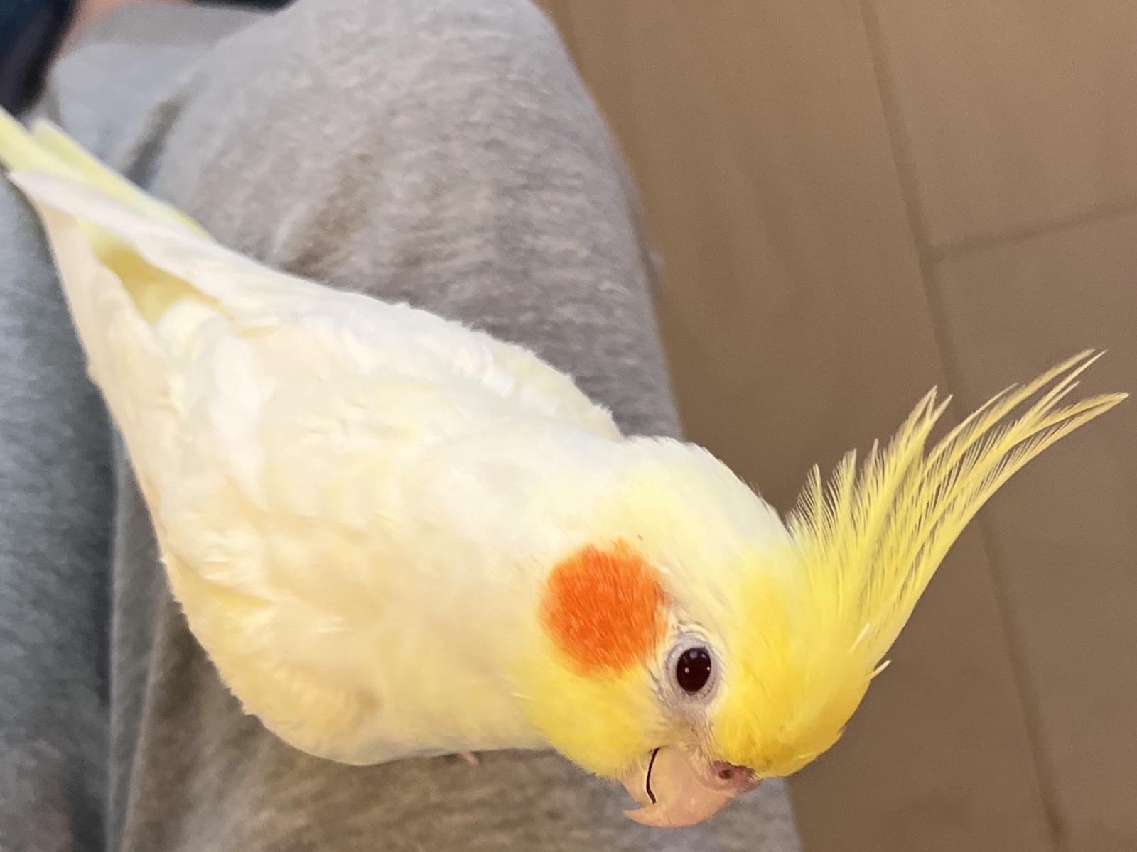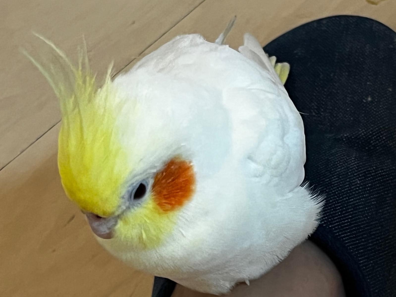 白くて黄色いコトリです。オカメインコルチノー男の子