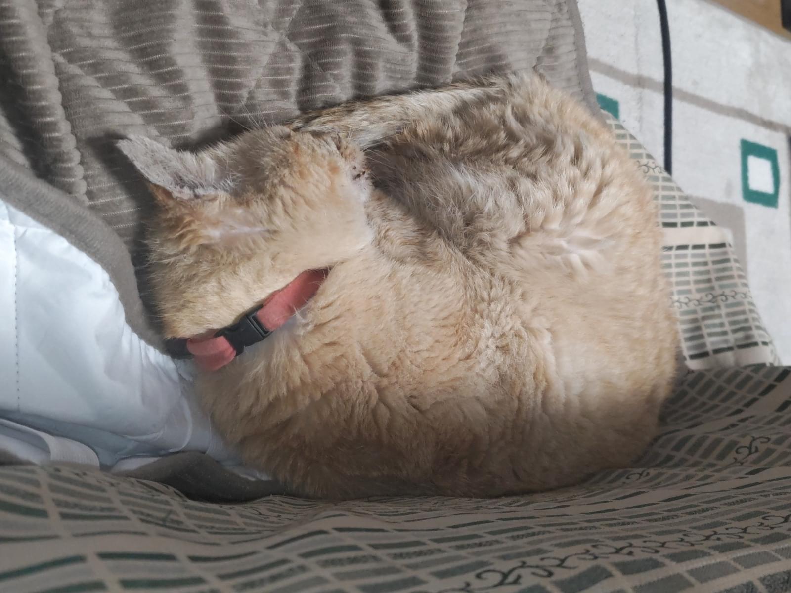 ▪くすみピンクの布製首輪を付けています。(迷子札なし)