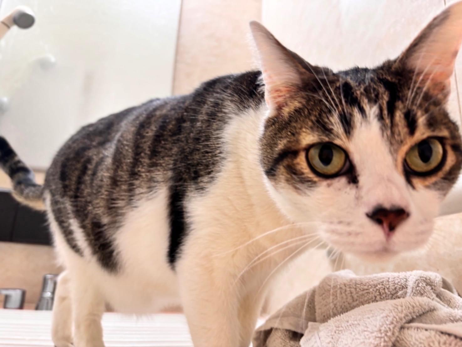 サバ白オス、小柄、尻尾が少し曲がって細い。割と人懐こい。ドアを開けた瞬間に逃げ出し、散歩して帰る事がたまにありましたが、夜になっても帰らず大雨と風、翌日も雨風で隠れたのか逃げたのかわかりません。いつも出歩いていた時にはあちこちで目撃されていた様子でしたが、行動範囲が通常の家猫より広く探しあぐねています。