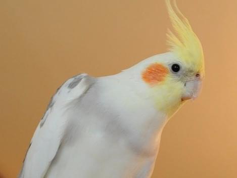 黄色とグレーのオカメインコです。