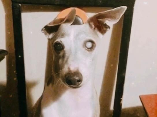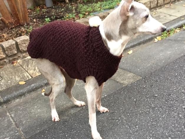 赤いセーターと赤い首輪をつけておりました。左目が白いです。