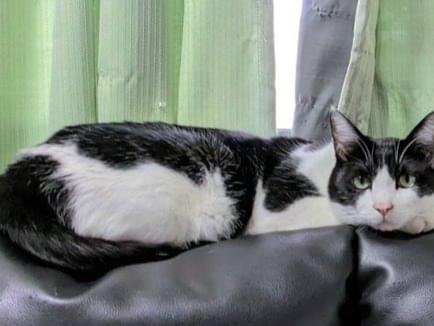 白黒の猫「リン」が脱走しました。オスです。体重6kgくらいで