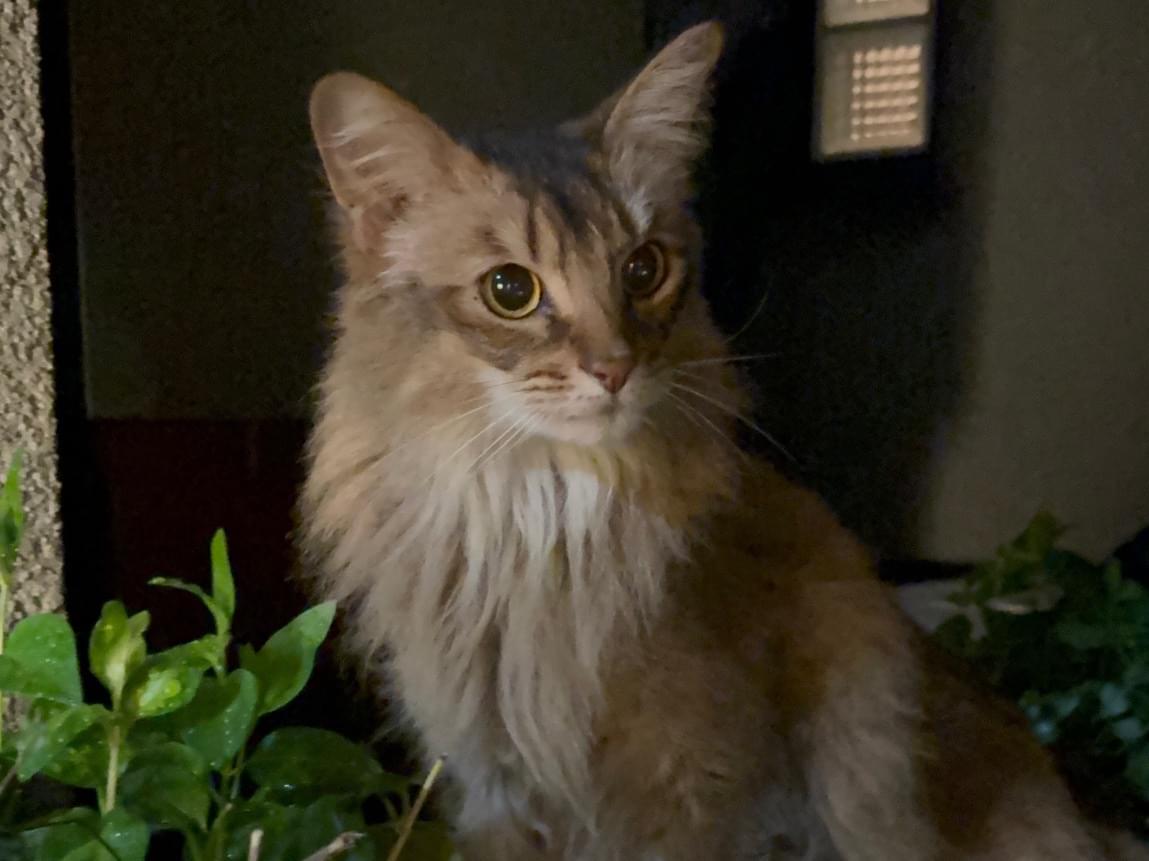 ・茶色い長毛種で背中からしっぽにかけて黒い毛もあり