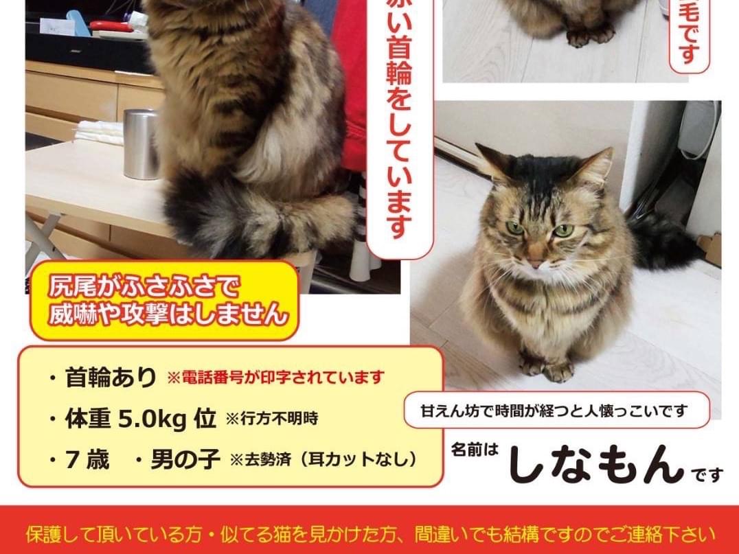 ホーム迷子猫東京都長毛で緑の目をしたキ…長毛で緑の目をしたキジ柄の猫を探しています管理編集するポスター掲載終了最終更新日時:2024/03/28 19:21写真情報用件迷子名前しなもん性別オス年齢不明場所東京都 多摩市馬引沢発生日時2024年3月23日(土)飼い主レン説明キャリーバッグから脱走してしまいました。 鈴のついた赤い首輪をしています。 メインクーンの血が入っており、長毛です。尻尾がふさふさしています。連絡先URL未設定掲示板情報交換のための掲示板です。ユーザーからの情報提供、オーナーからの連絡などにご利用下さいませ。コメントを書き込むエリアは離れておりますが…小山田返信0件2024/04/09 19:43家族が似たような猫を見かけたようですちいちゃい返信0件2024/03/30 09:18