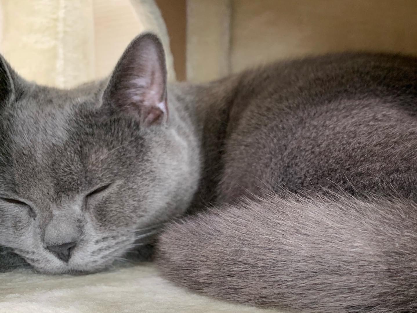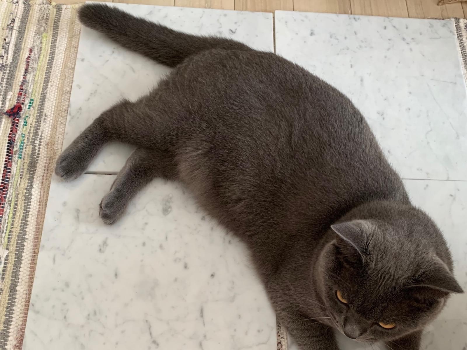 体は大きくお腹にたるみがあり、尻尾はまっすぐです。