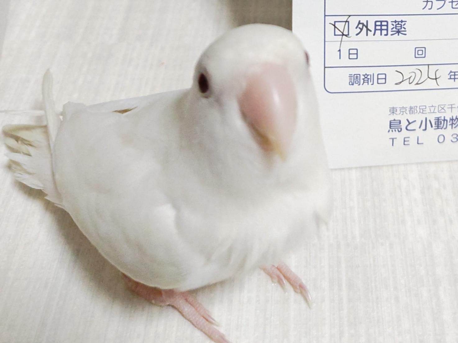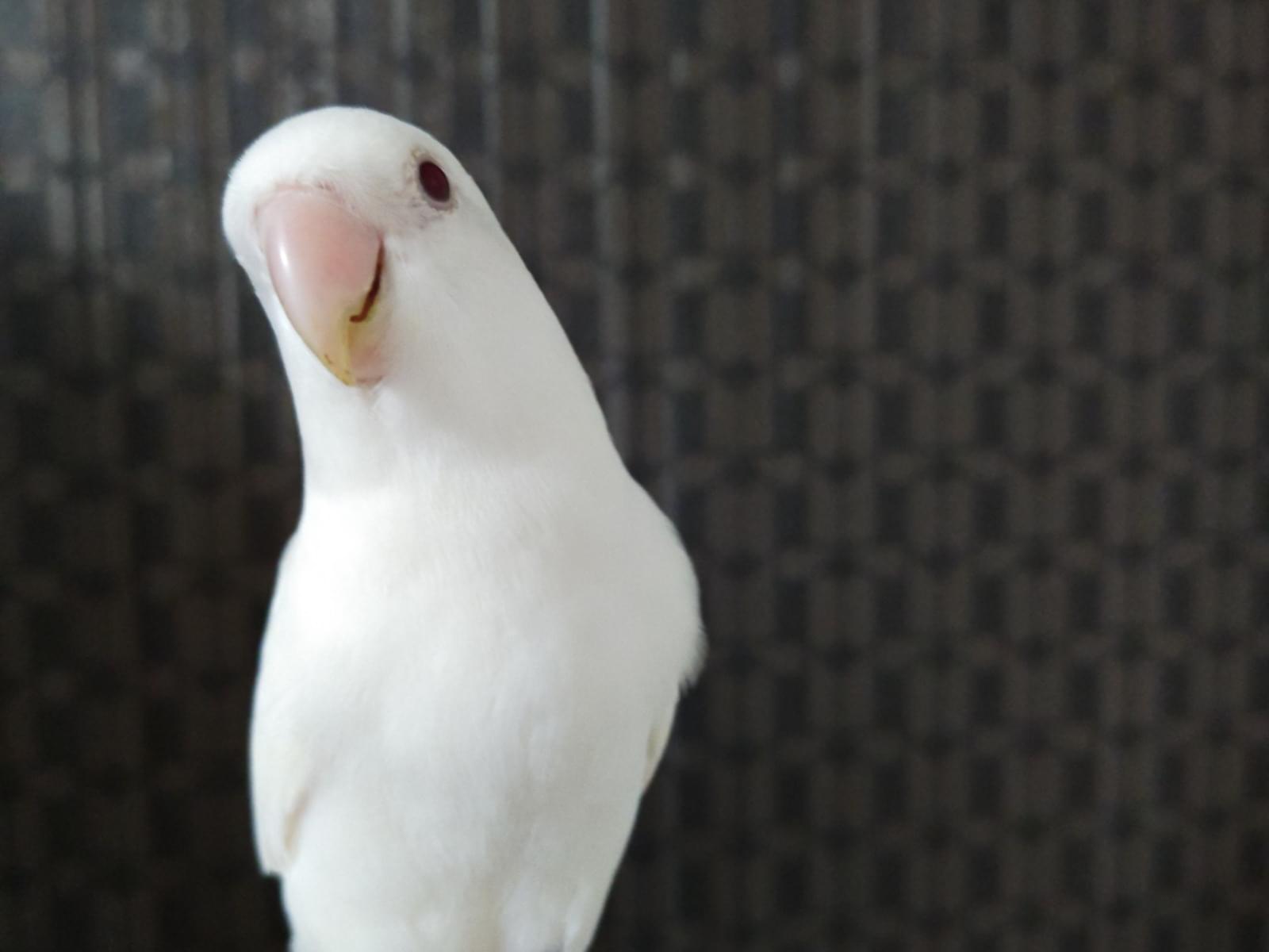 コザクラインコ(白)ほんのり黄色が入っていますが、ほぼ真っ白に見えます。目は赤です。クリッピング有。