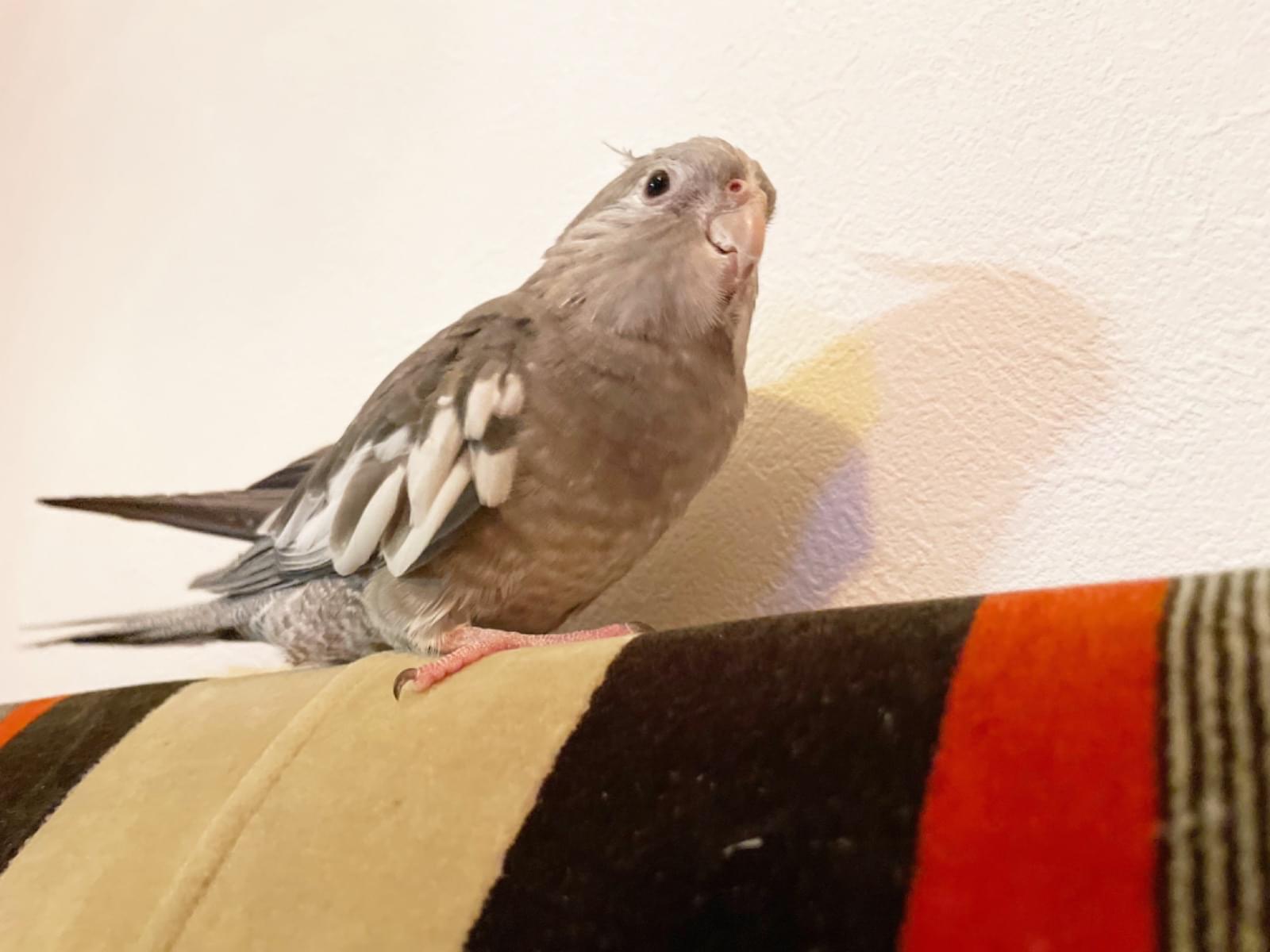 犬の散歩から帰ってきた時、玄関の扉を開けて犬の外したリードを取ろうとかがんだ時に自分の頭に止まろうとして止まれず、かすったような形でそのまま飛び立ってしまいました。