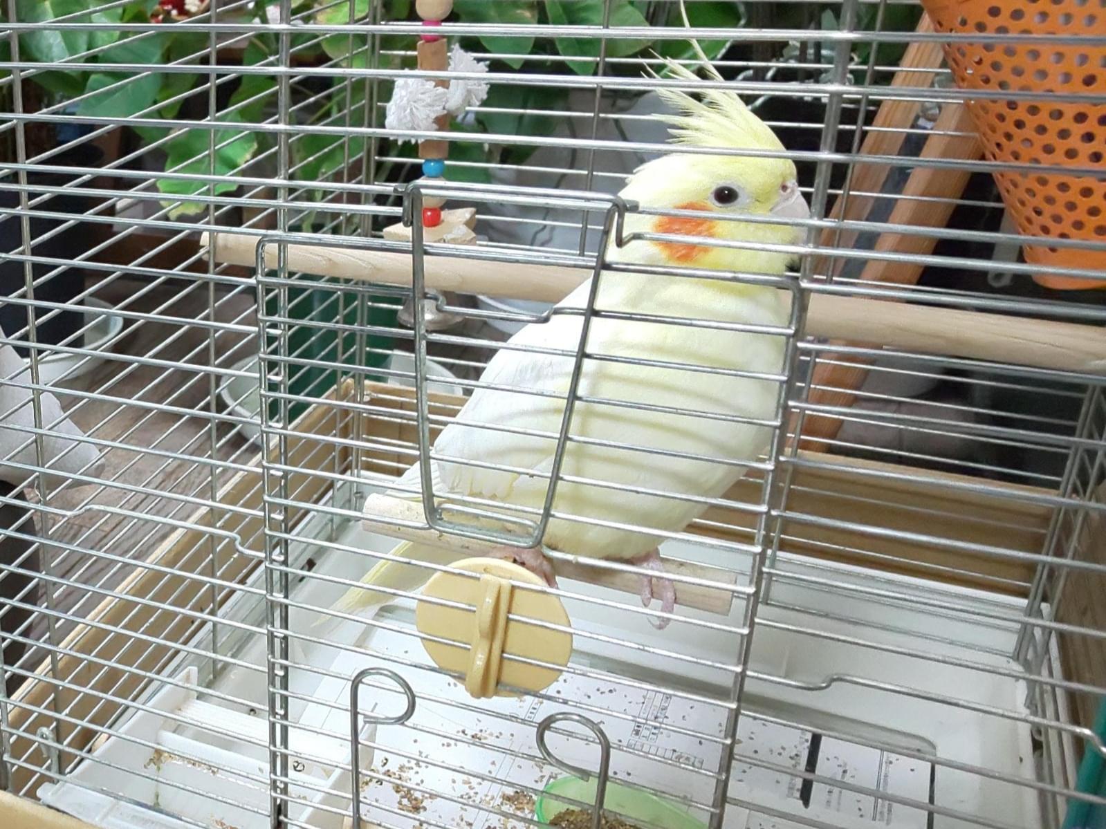 体が白く、頭と尾が黄色でほっぺがオレンジのオカメインコを探してます