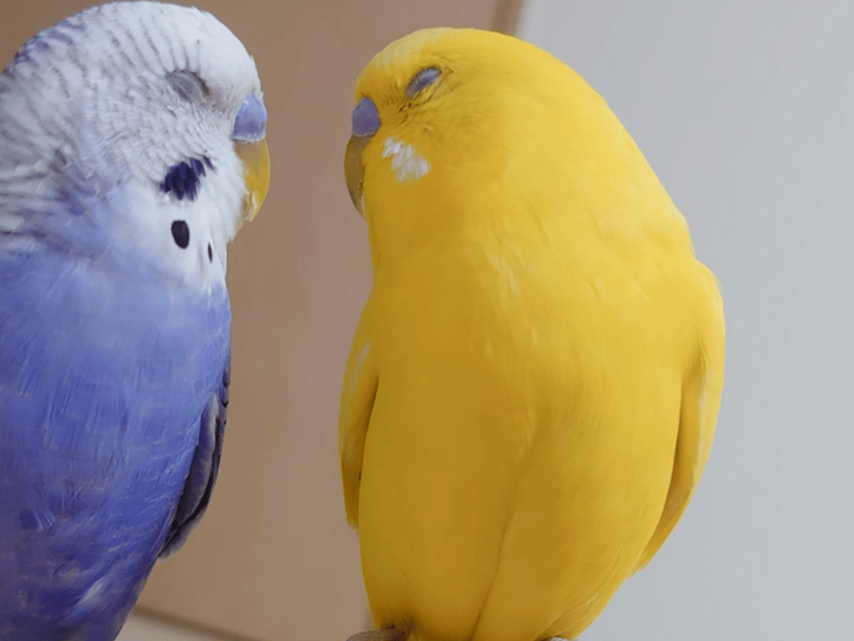 飼い主の私以外の肩や指には止まりにくく、少し臆病です。