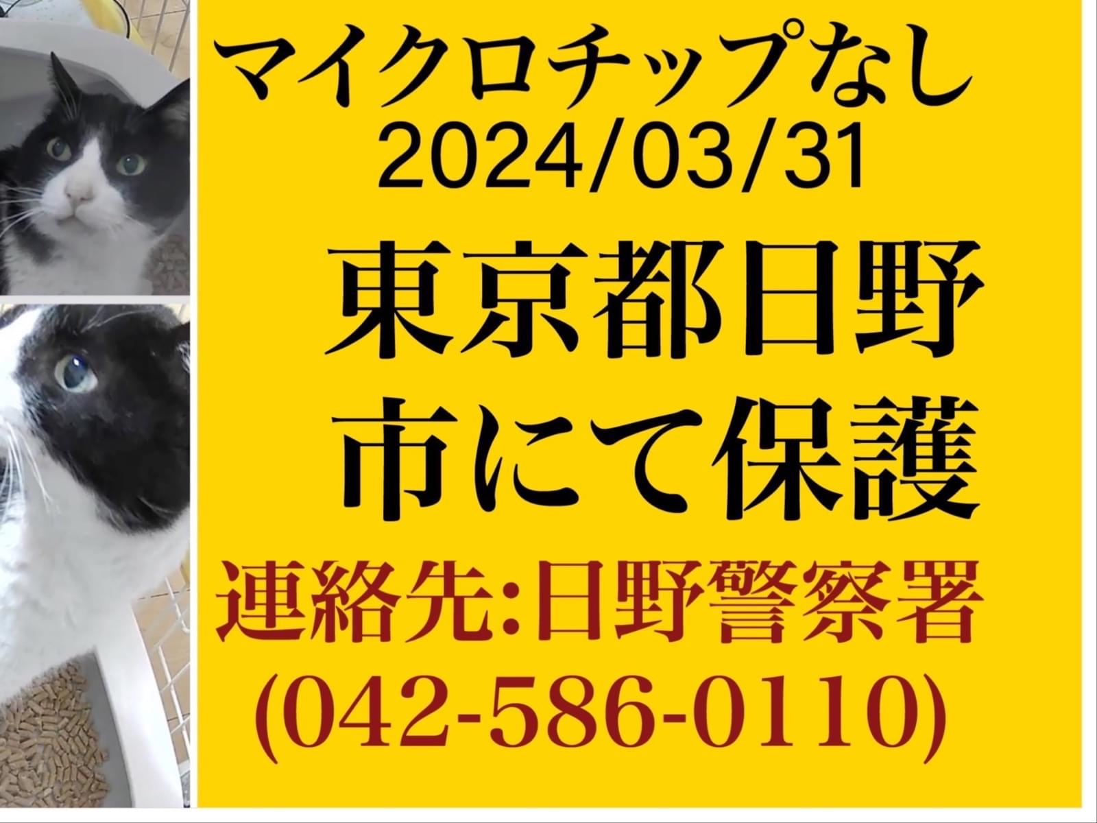 人馴れしているがゲージからは出てこない、低めの声でなく。首輪なし。