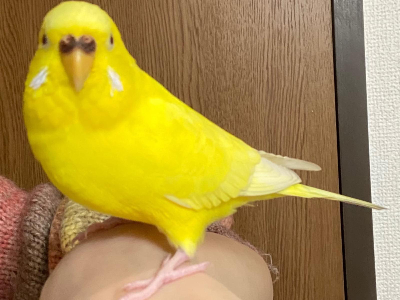 ぴーちゃんぴーちゃんと自分の名前を喋ります。肩によく乗ってきます。