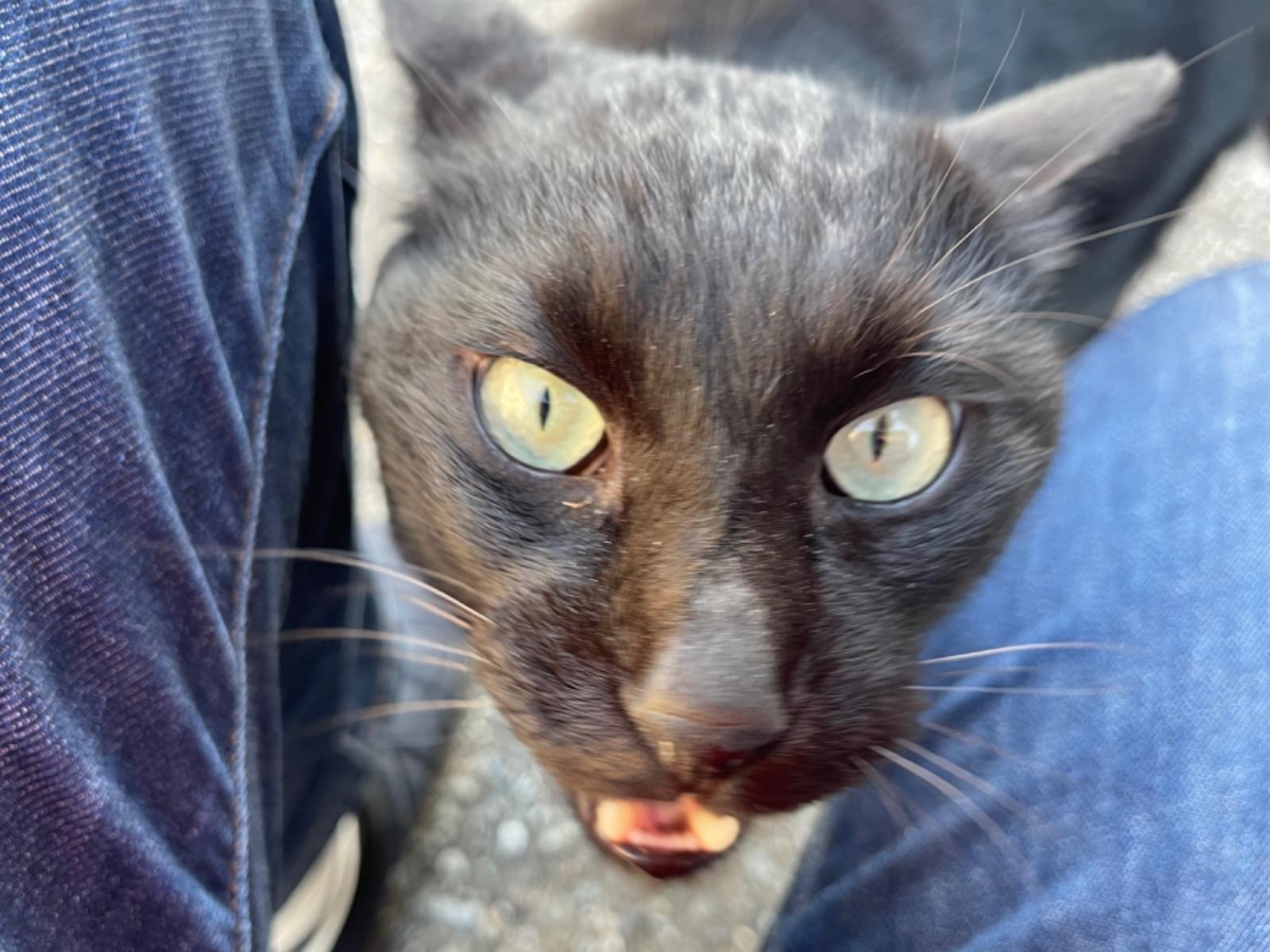 少し痩せていますが、きれいな毛並みの黒猫です。性別確認できていません。