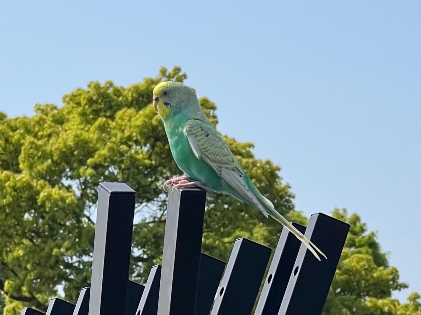 舎人公園(ソリゲレンデ付近)にてセキセイインコ目撃しました。