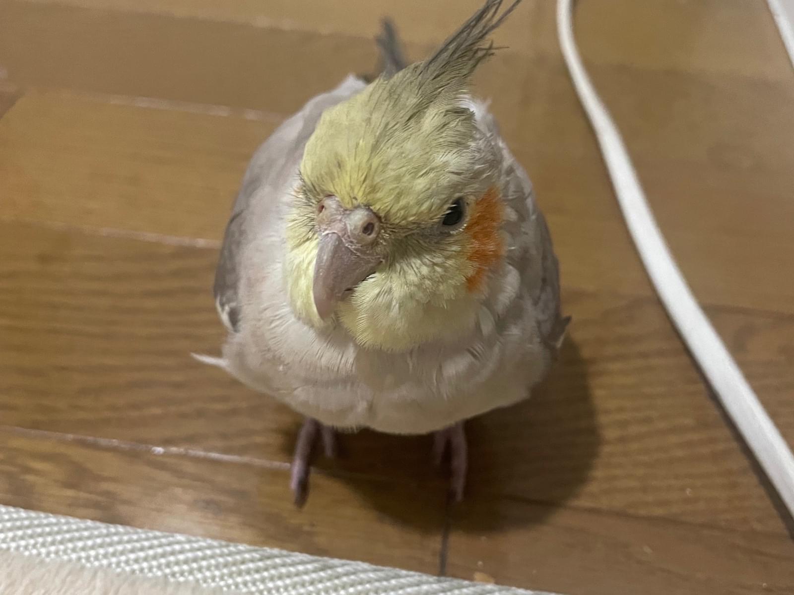 おっとりした性格の寂しがりやで肩にとまったり、そばにずっといるような子です。