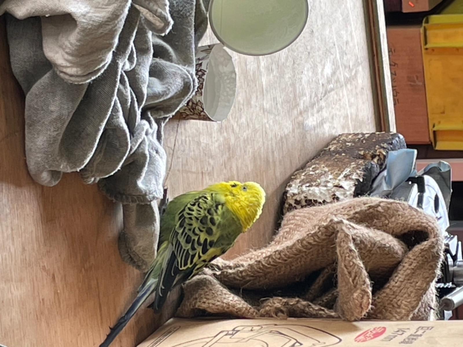 府中町新地フレスタ付近の会社にて迷子のセキセイインコを保護しています。黄緑色です。オスだと推測しました。