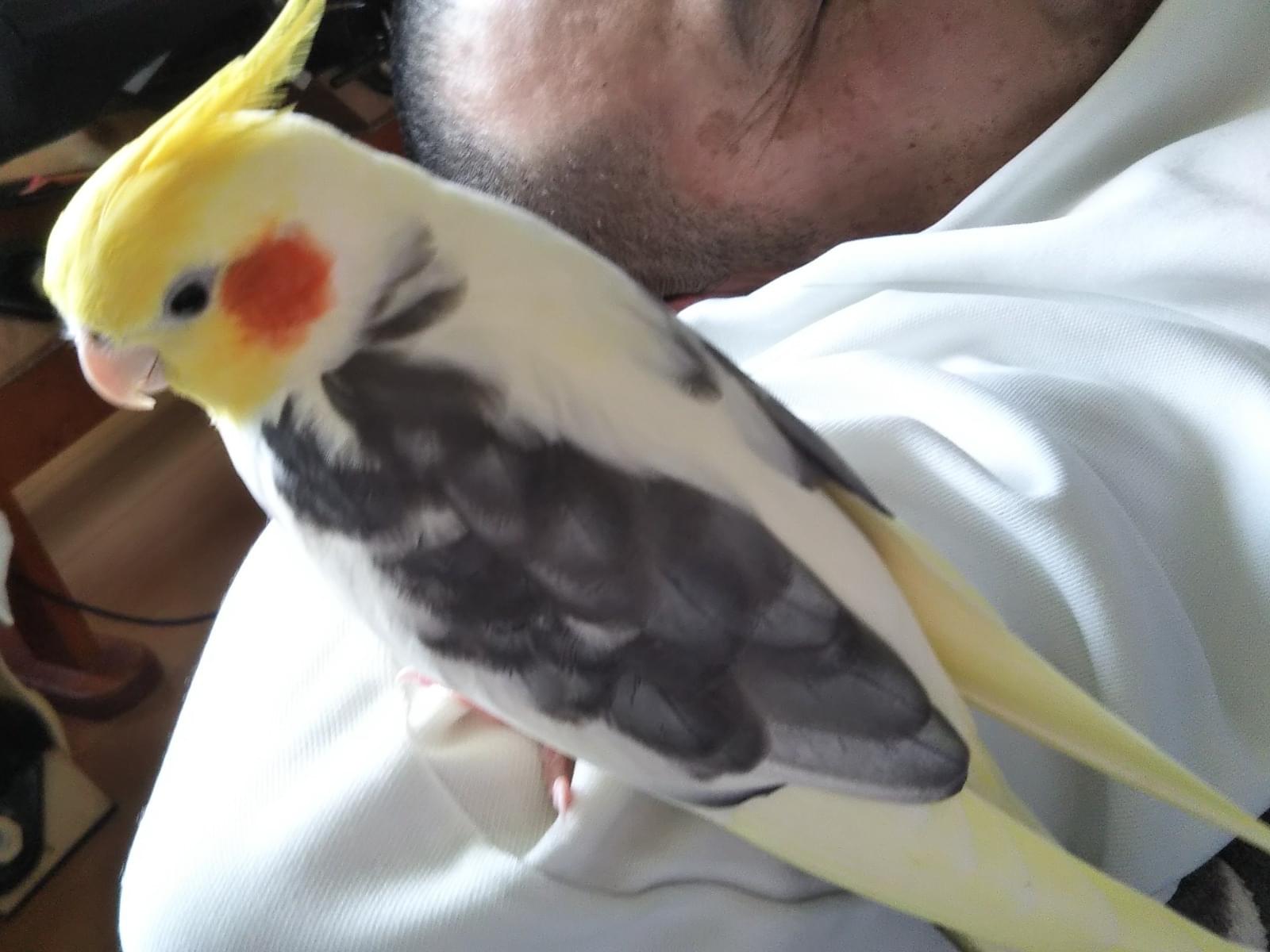 飼い主の不注意で肩に乗せたまま外に出てしまい飛んでしまいました