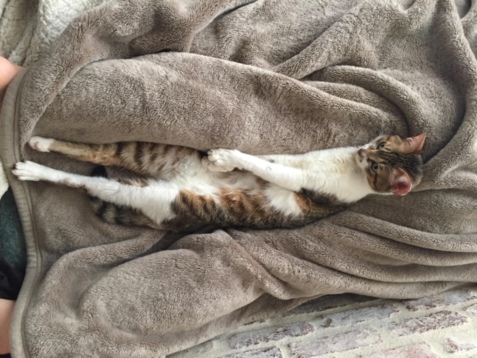 人懐こく、膝や腕、お腹に乗って寝ます。