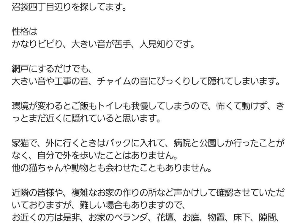 ホーム迷子猫東京都猫を探しています猫を探しています管理編集するポスター掲載終了最終更新日時:2024/04/30 21:06写真情報用件迷子名前だんご性別オス年齢もうすぐ3歳場所東京都 中野区沼袋発生日時2024年3月25日(月)飼い主maa説明・ブリティッシュショートヘアー ・マイクロチップあり ・去勢済みオス ・かなり大きい ・人見知り連絡先URLtwitter.com/maa663794779291掲示板情報交換のための掲示板です。ユーザーからの情報提供、オーナーからの連絡などにご利用下さいませ。コメントを書き込む沼袋駅の近くの公園にいます。おおたき返信0件2024/12/17 08:32