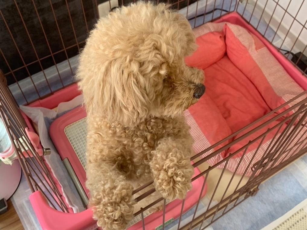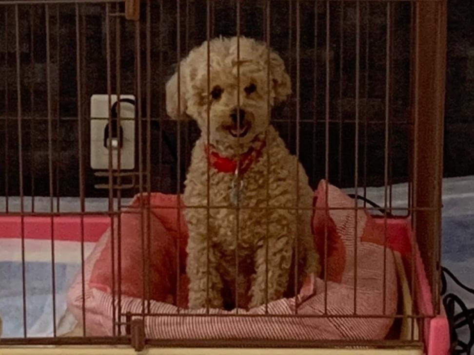 犬種はトイプードルで色はベージュ色。