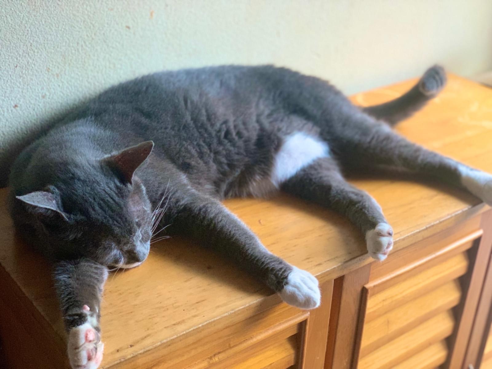 名前はペロです。全体的な色はグレーで
