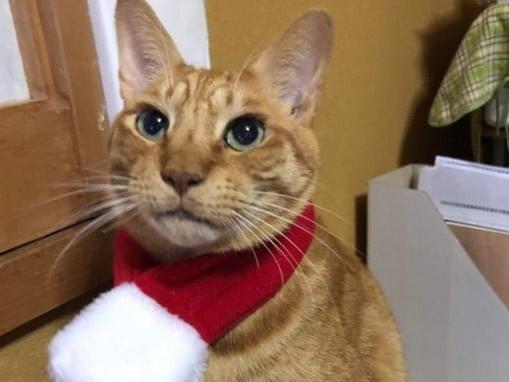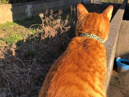 ・緑の唐草模様の首輪(名前と電話番号が貼ってある)