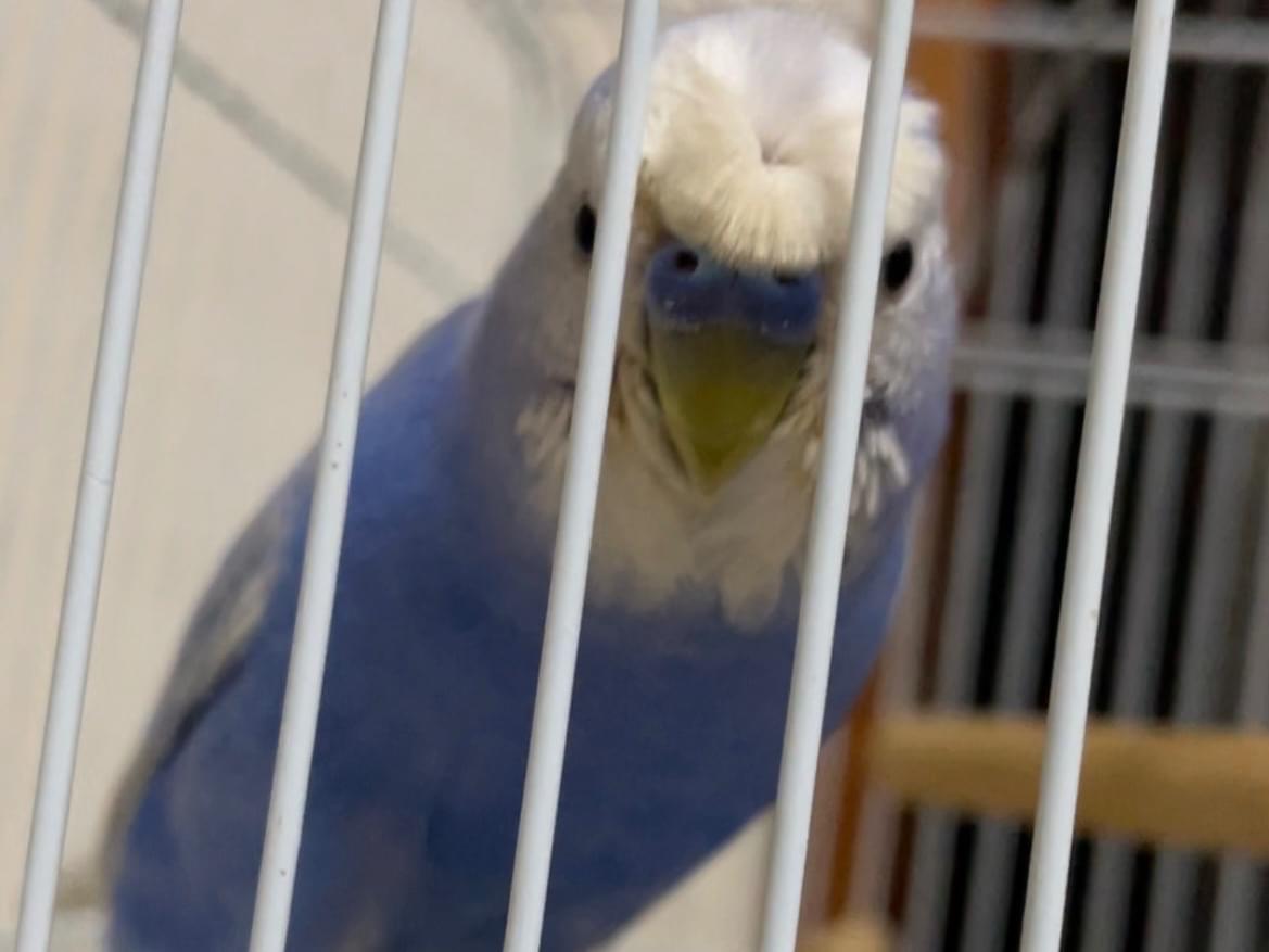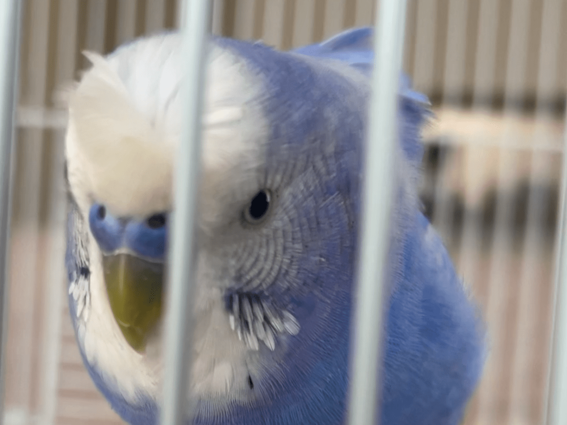 羽衣インコのため、頭や背中がふわふわしています。