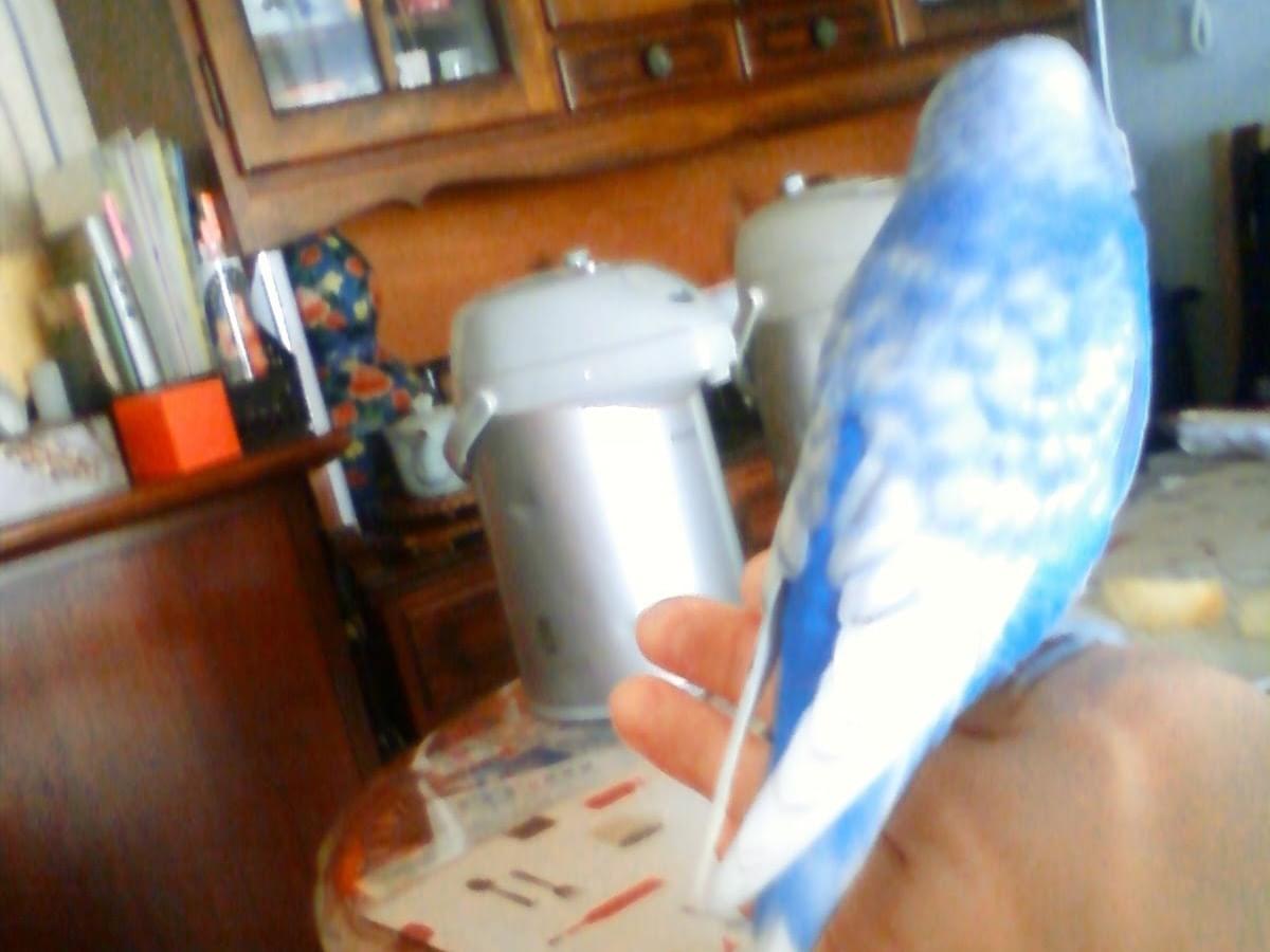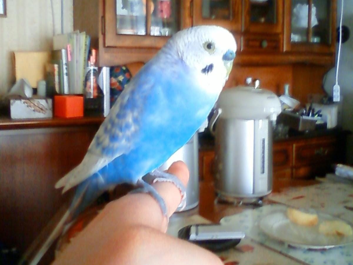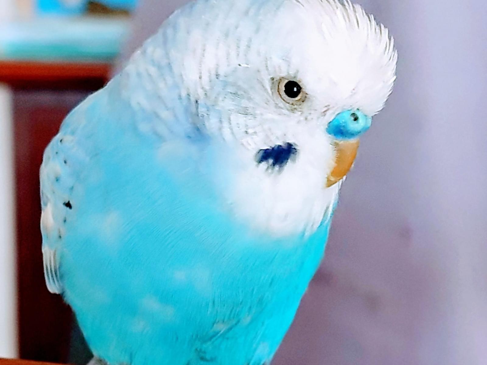 全体的にムッチリしていて食欲旺盛な人馴れしたお喋りをする淡い青色をした頭は白いインコです。
