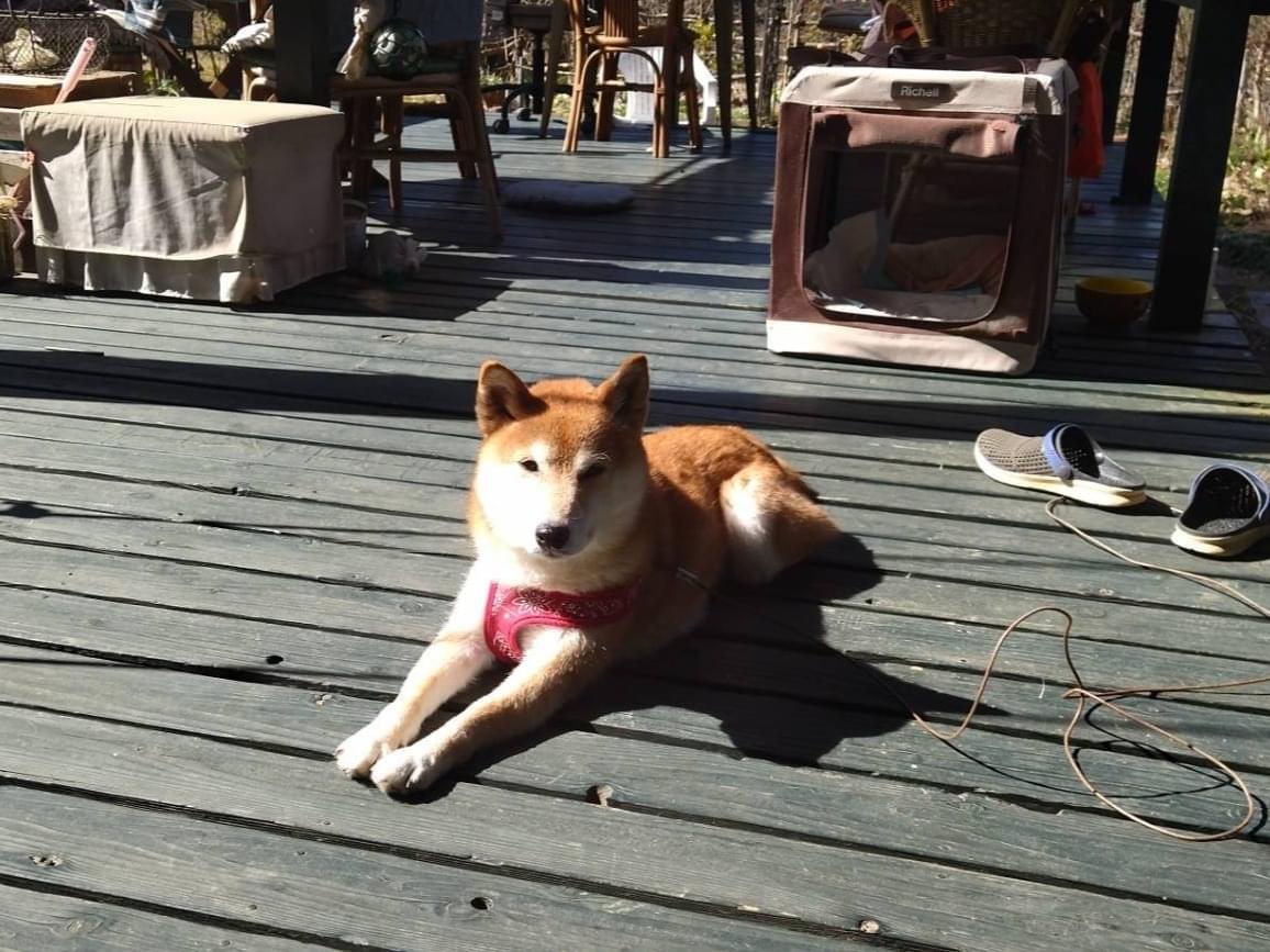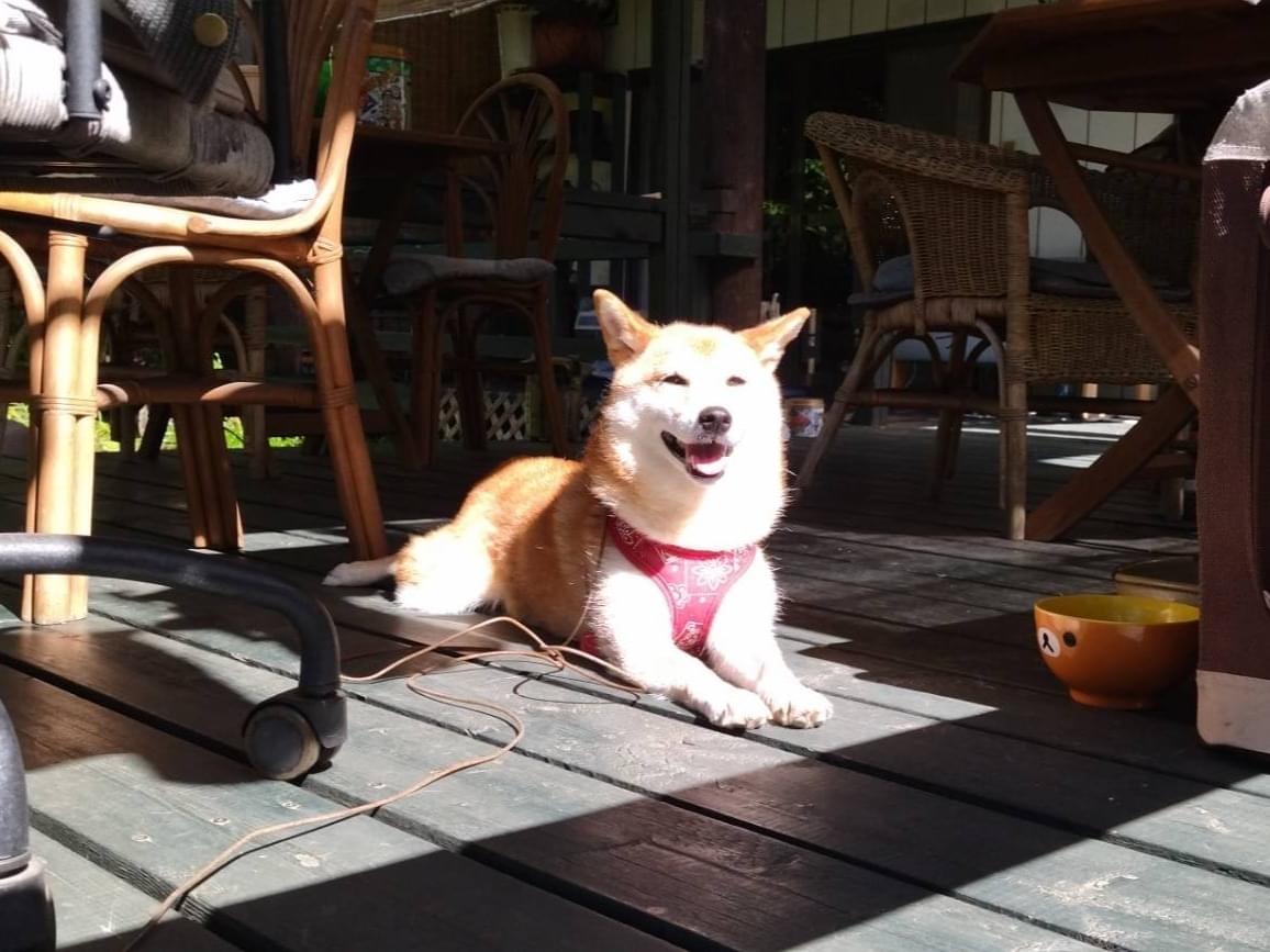 赤のバンダナ柄の胴輪をつけた9歳メスの柴犬を探しています