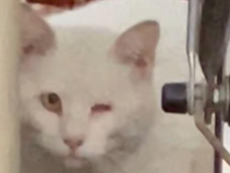 2024/05/13夕方に片目を怪我している白い猫さんがいました。