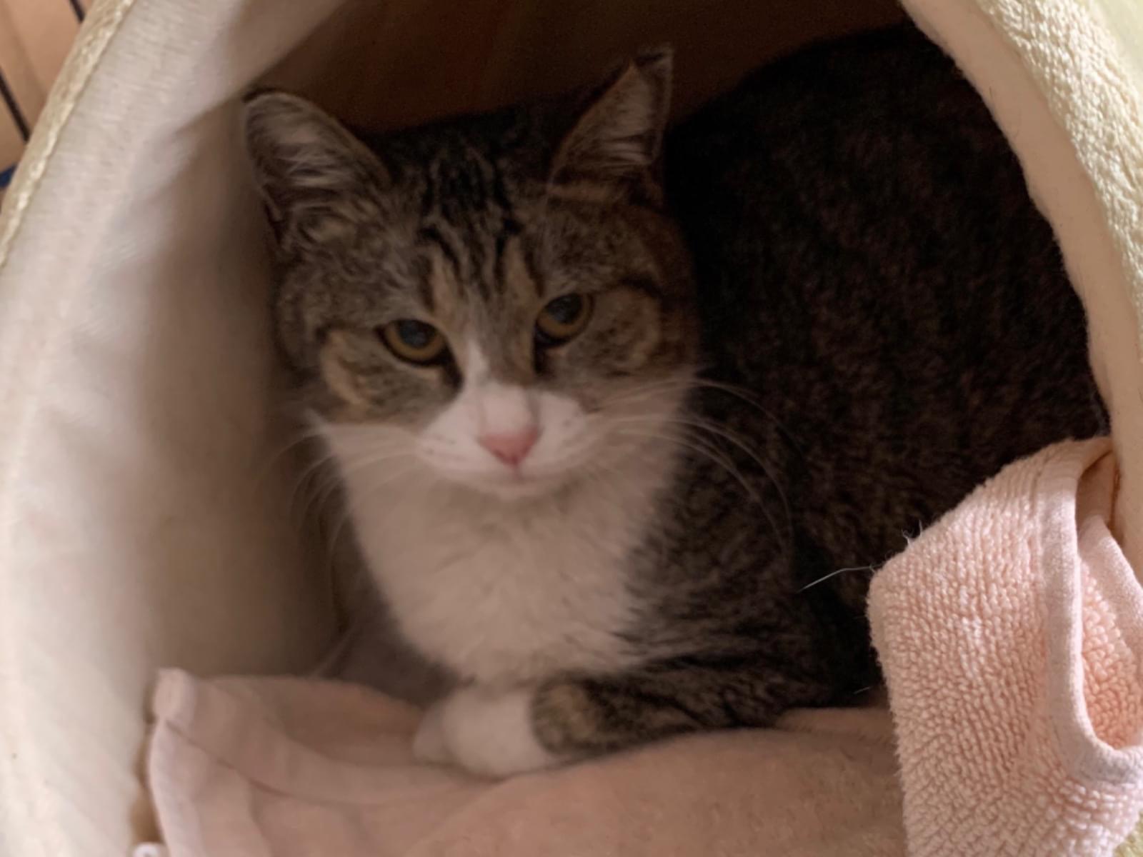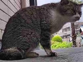 猫風邪の右前脚の怪我で黒くなってしまい、状態は悪く痩せてます。