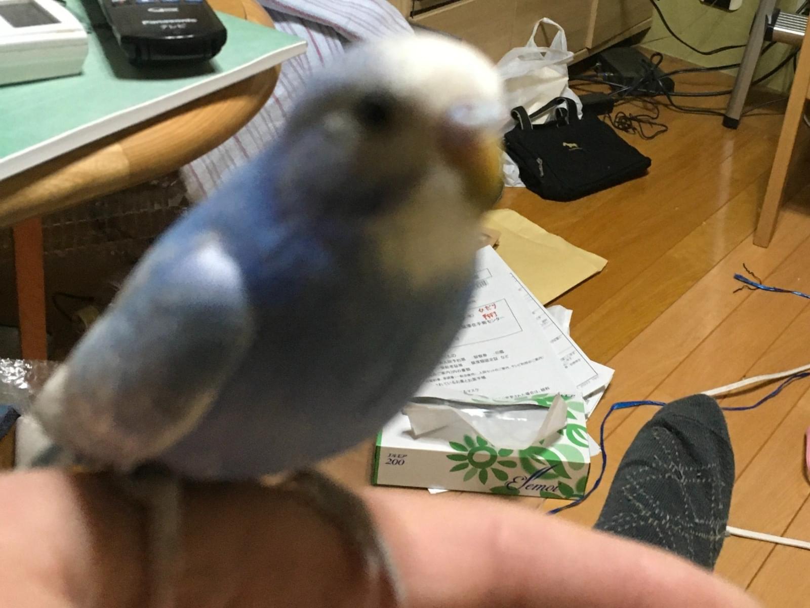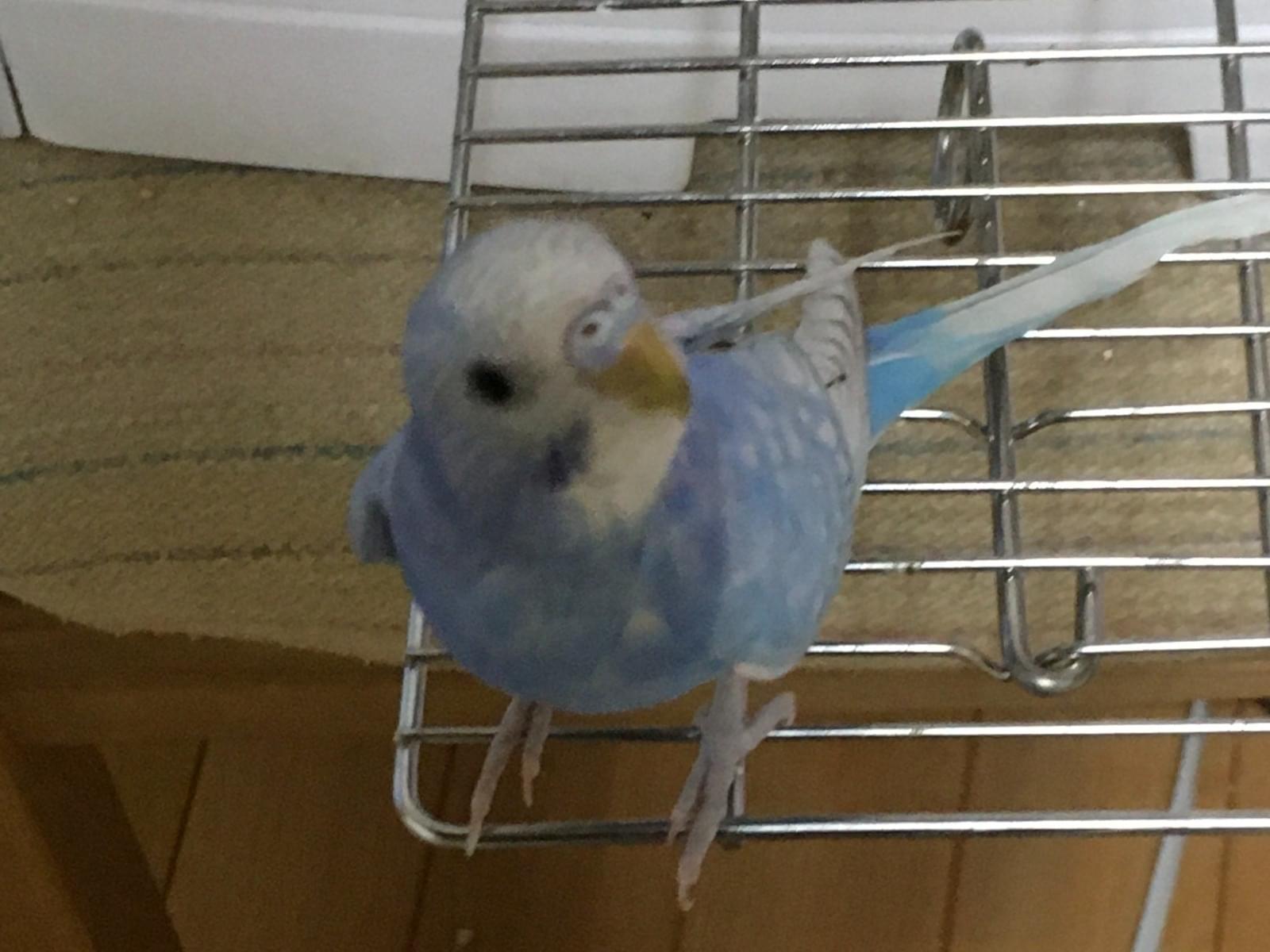 体はブルーで頭は白いセキセイインコです。手乗りです。