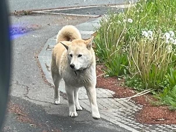 少しずつ近づいてみたところ、警戒はしたものの吠えることはありませんでした。しかし、残念ながら道路の端と端の距離で逃げられてしまいました。林を抜けてボンサーブ方面に向かいました。