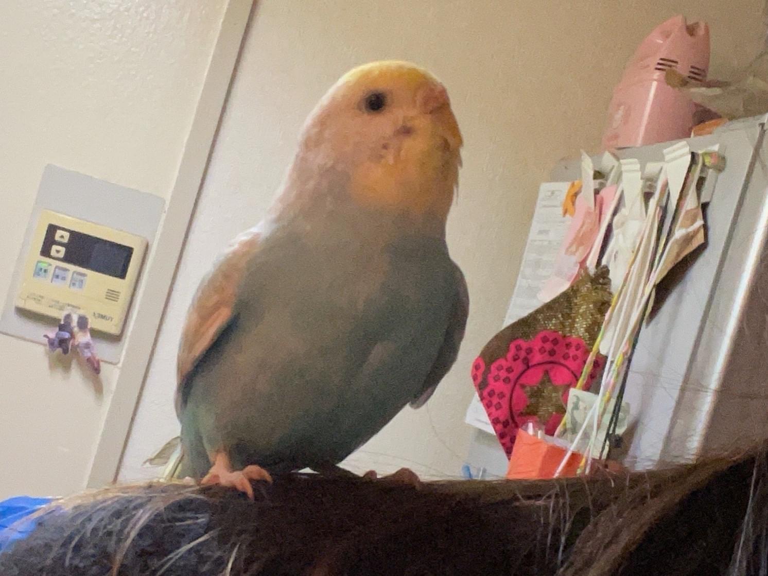 放鳥させる際に窓を開いてるのに気が付かずに飛び出してしまいました。とにかく人が大好きで肩に乗ってきます