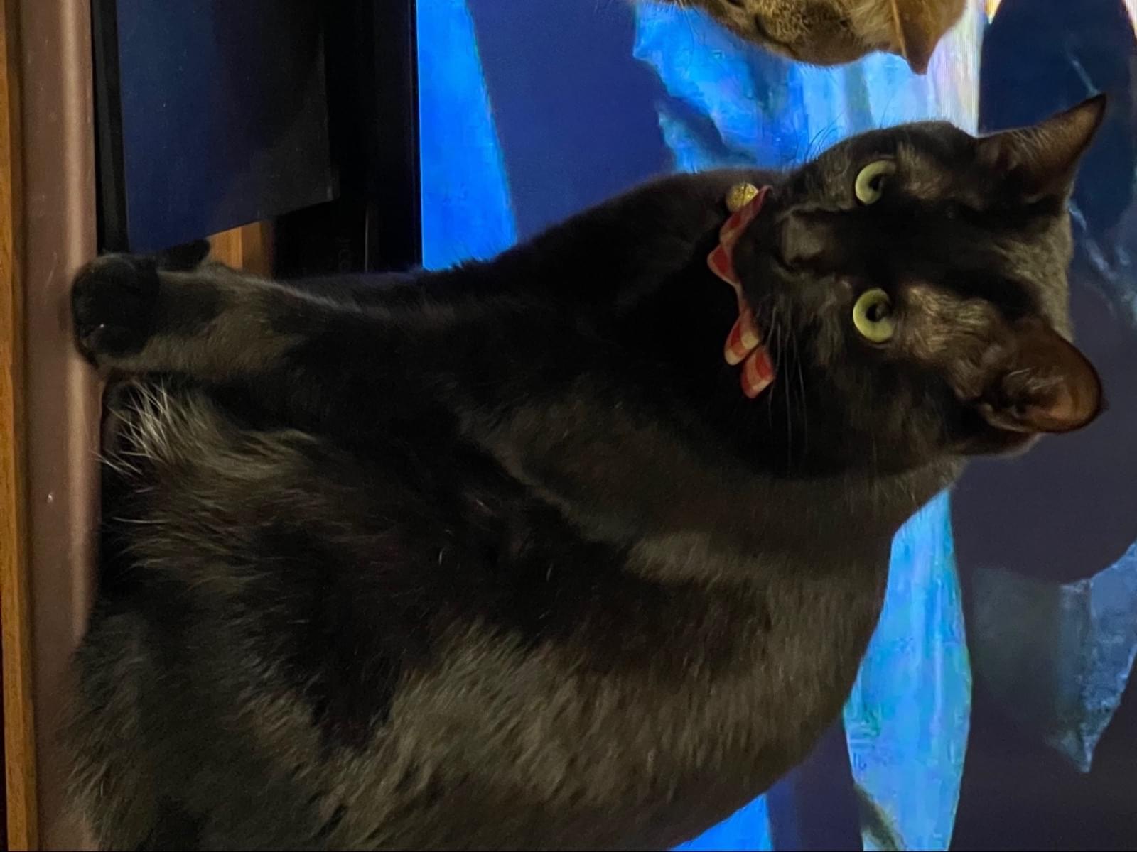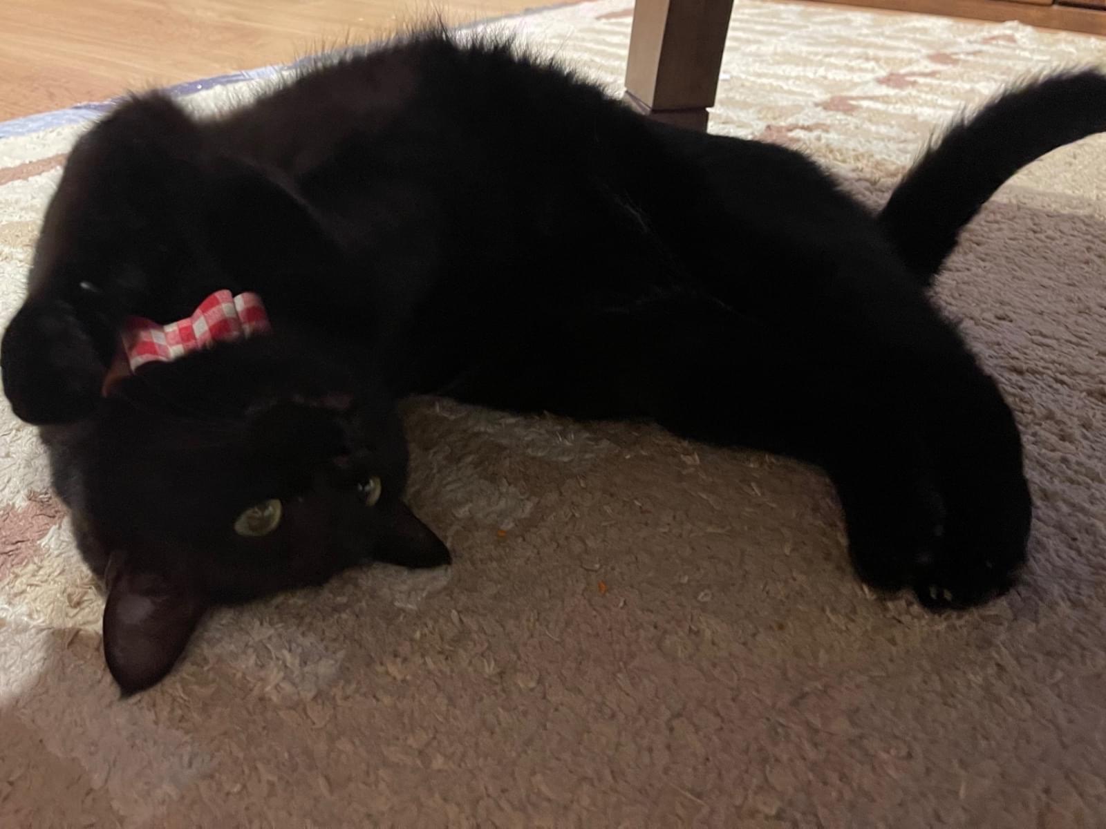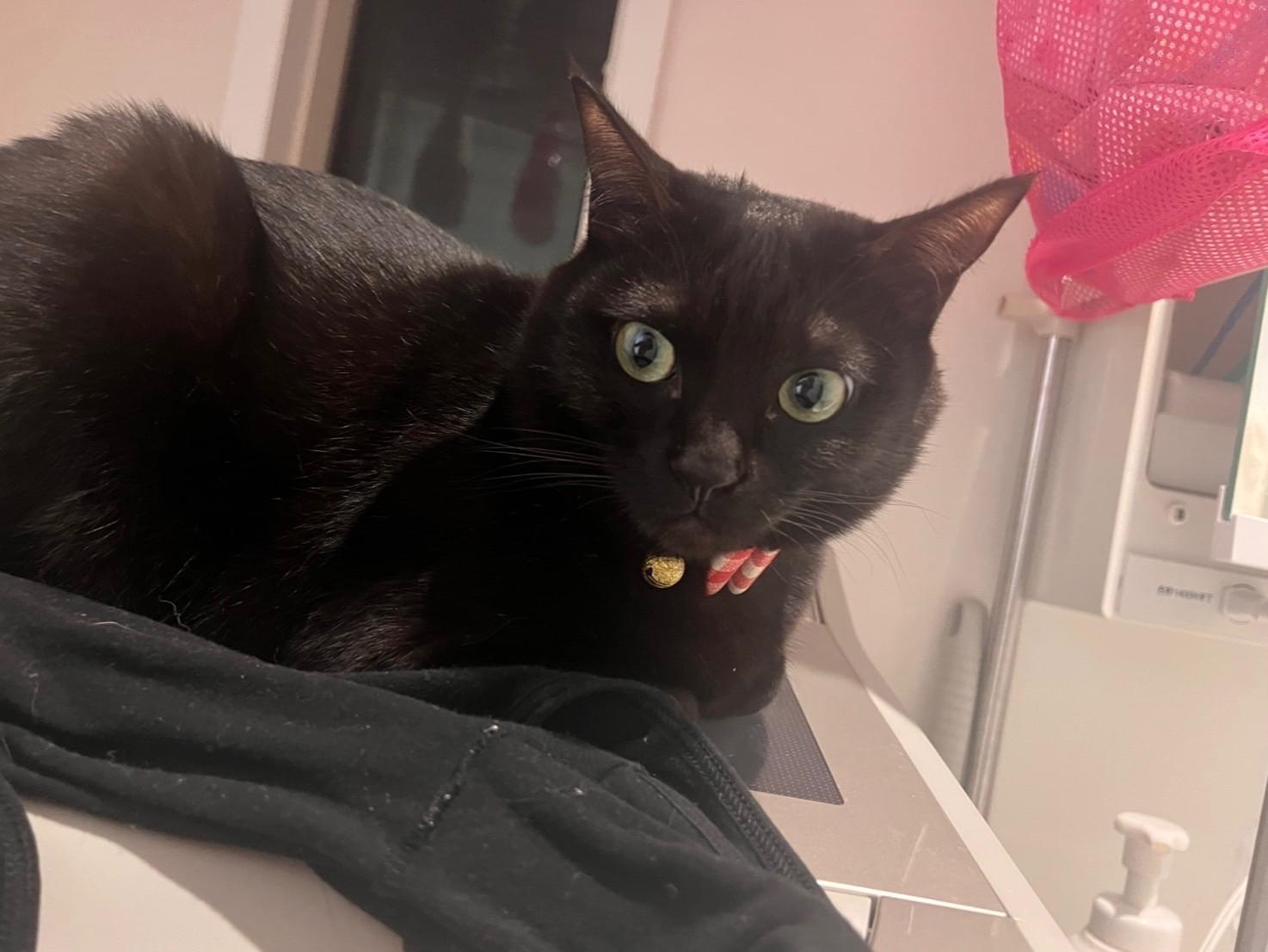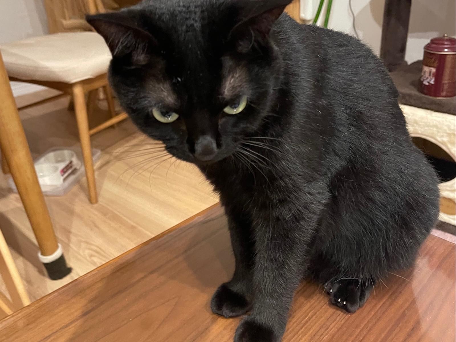 4歳の黒猫女の子です。お腹の毛が少し白いです。