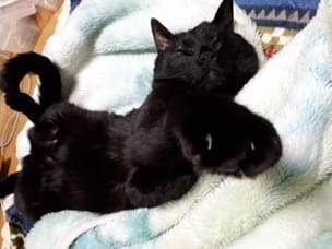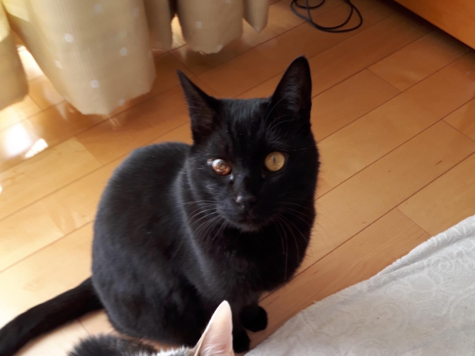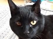 体重6キロ強と大きめで、少し白毛混じりの黒猫です。