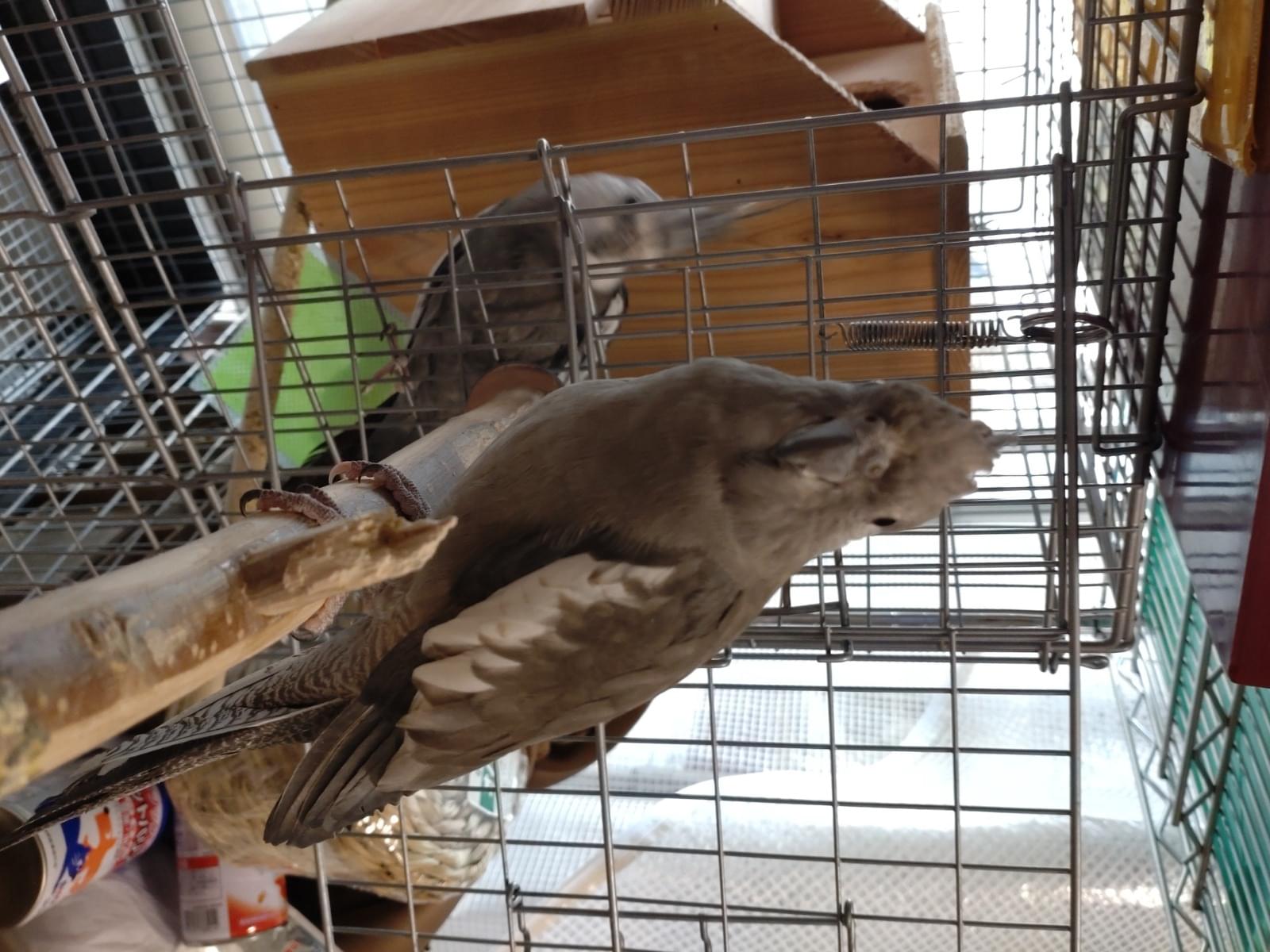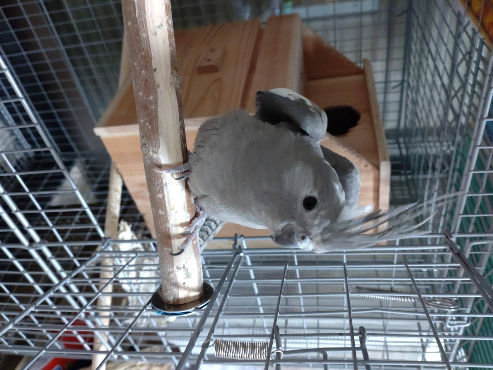 色はグレーで、チークパッチは無し。手乗りかぶれなので触ろうとすると噛もうとしたりします。