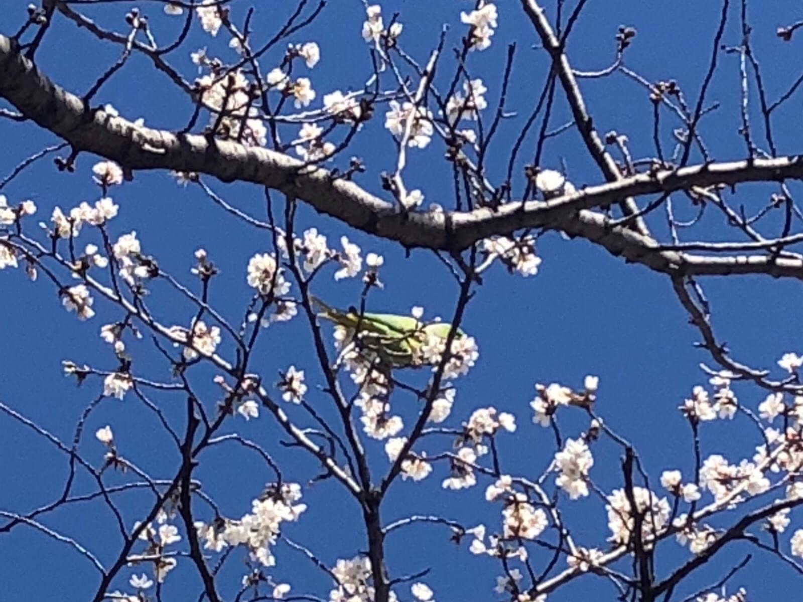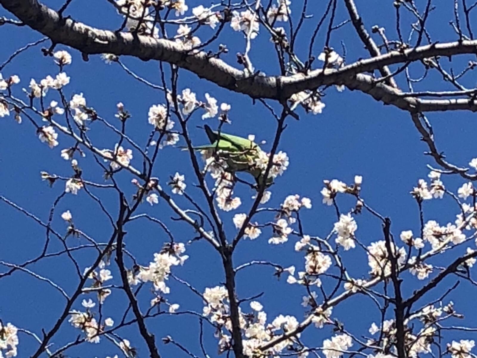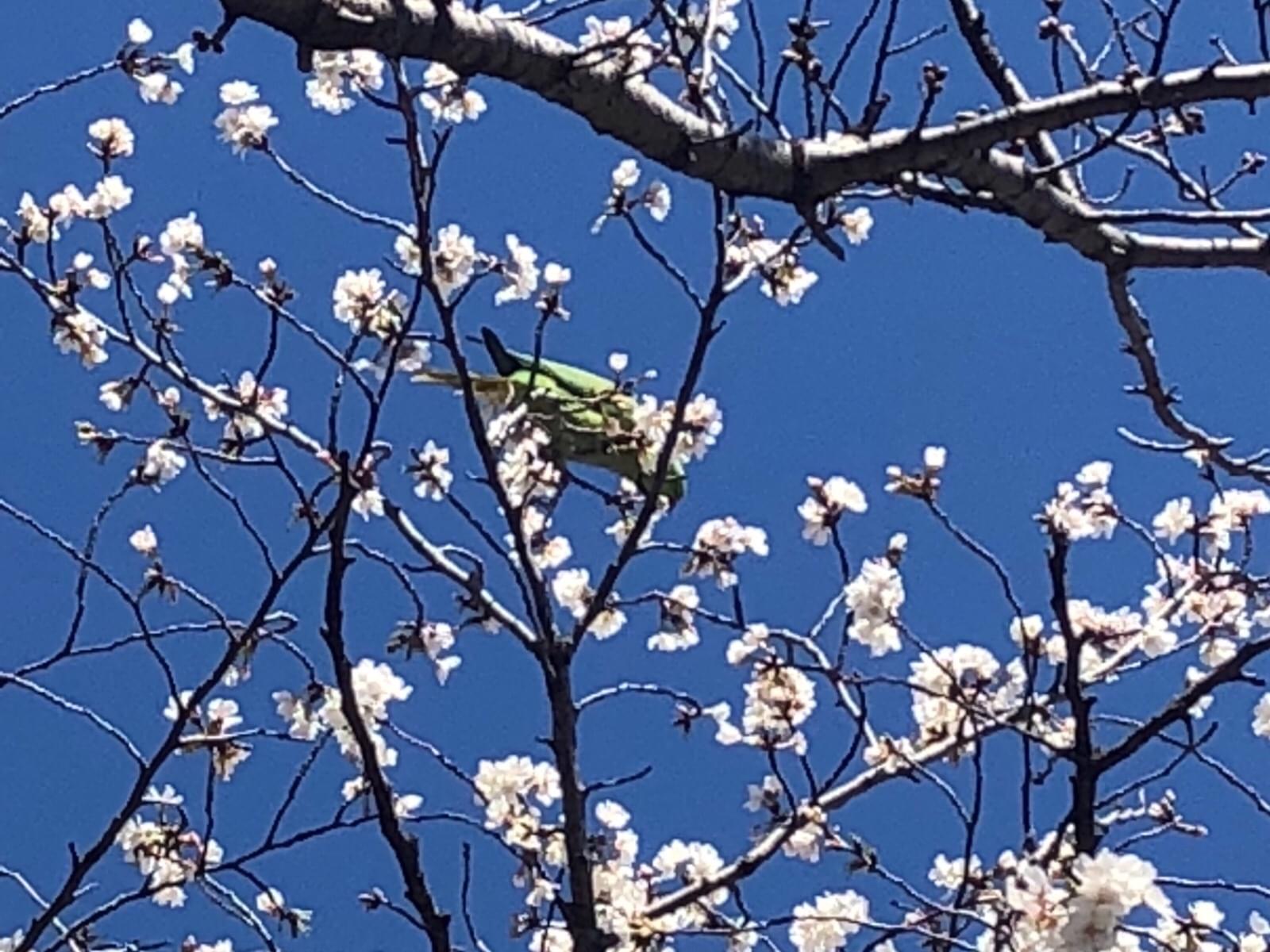 交通公園の子どもの車のコーナーの所の桜の木にいました。桜の花びらをつついて落として遊んでいて楽しそうでした。