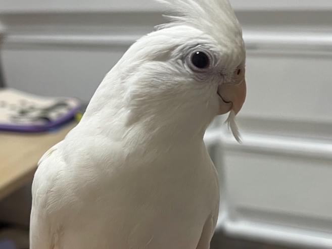 白色のオカメインコを大阪府堺市堺区中向陽町から飛んで逃げてしまいました。高い声で名前を呼ぶと大きな声で返事をしてくれる人懐っこいインコで1人にするとよく鳴く子です。保護された方、目撃した方が居ればご連絡お待ちしております。よろしくお願いいたします。