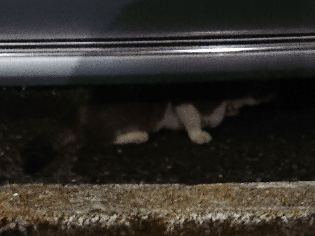 道路脇から、草むらへ、そのあと車の下へ、
