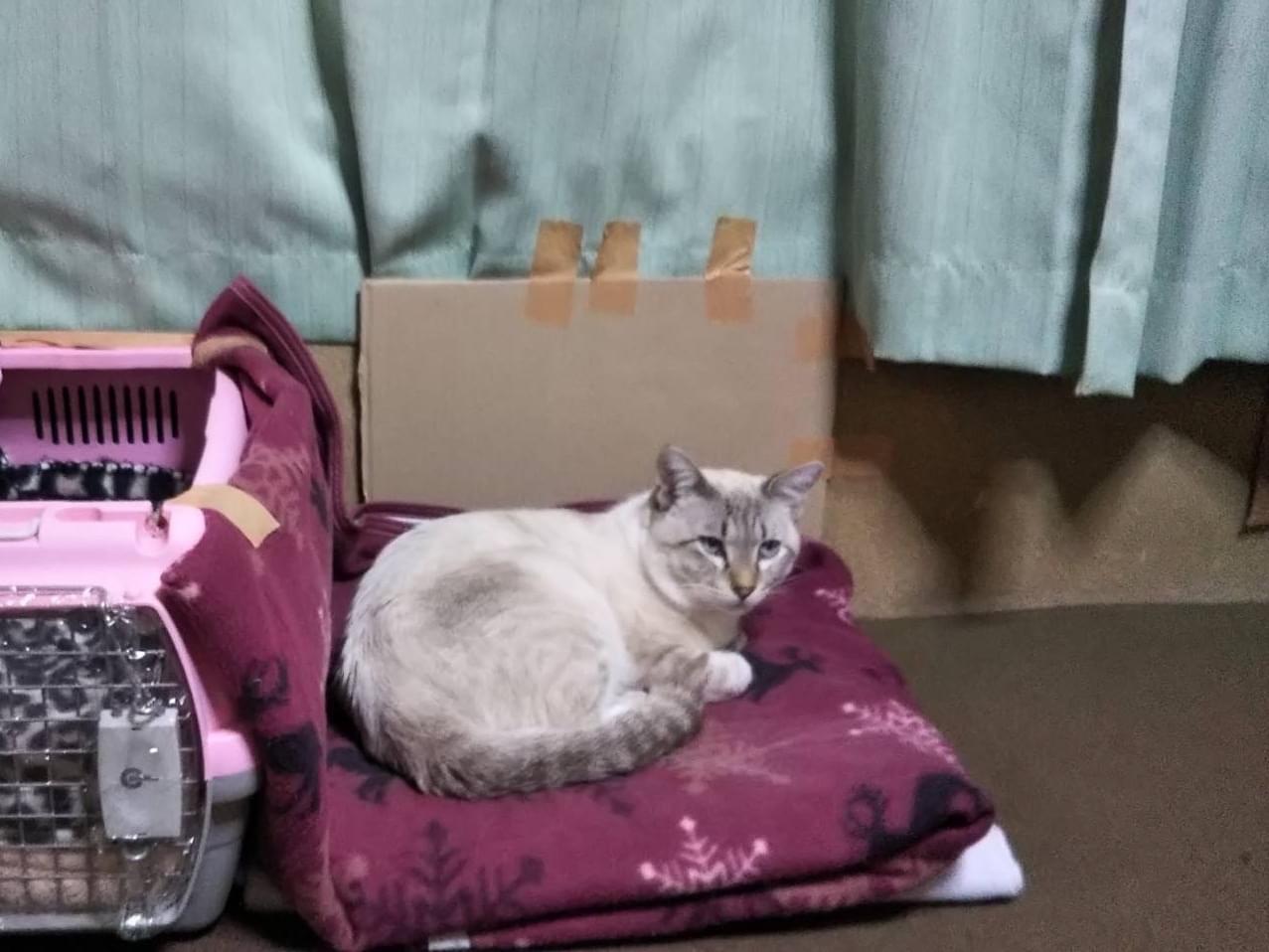 19日の夜に自分で網戸を開けて出て行ってしまいました。首輪をつけておらず、まだ生まれて半年過ぎですが大きめの成猫に見えます。