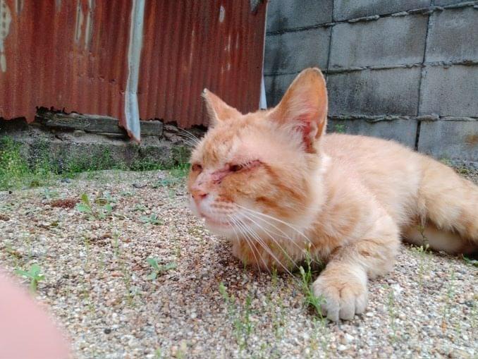 猫風邪?でくしゃみ、結膜炎を患っていてガリガリです。