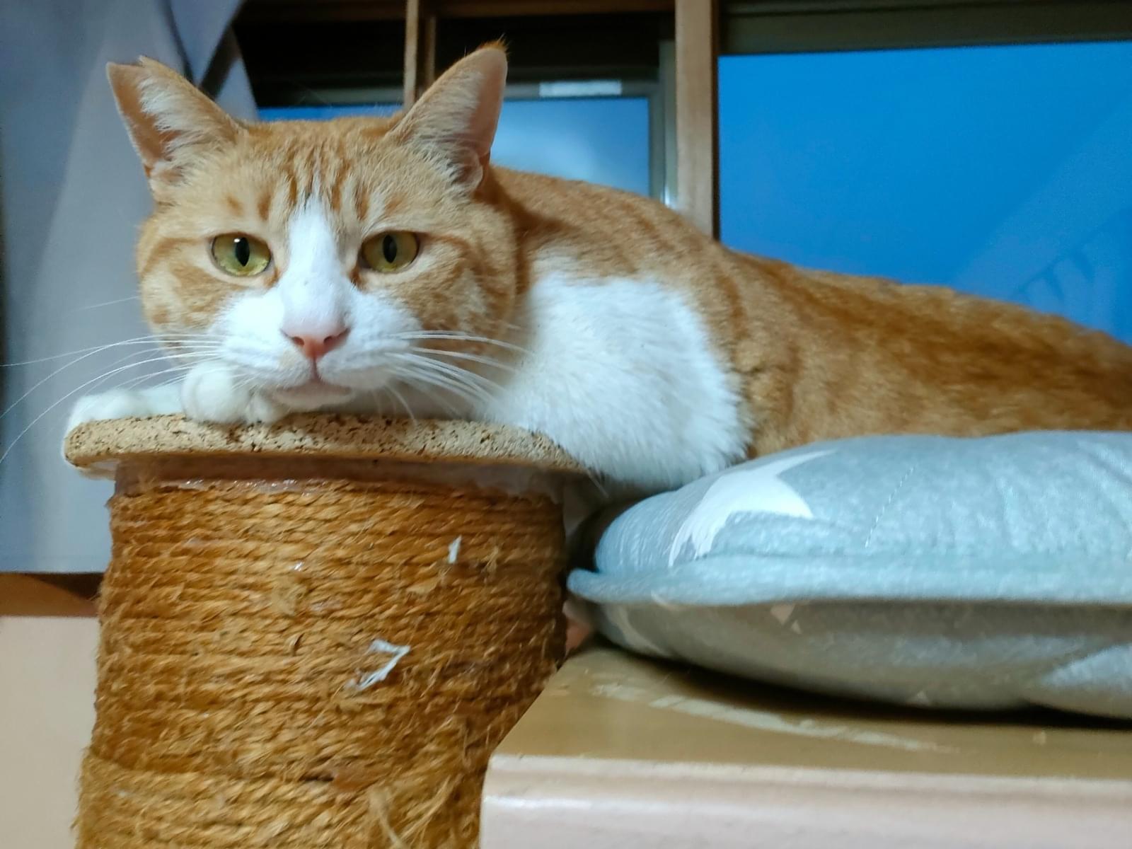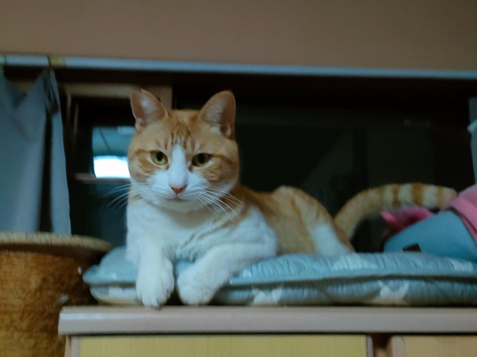 お膝が大好きなので、元は飼い猫の可能性が高いです。